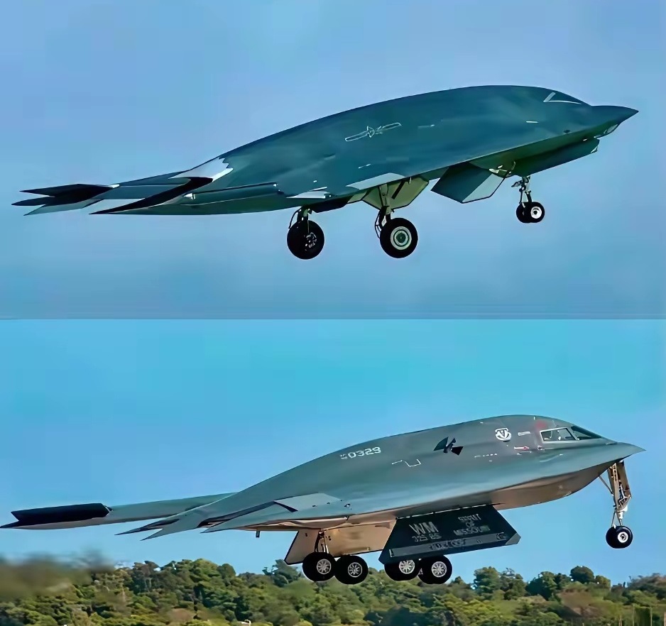 攻击-11“玄龙”无人机与B-2同角度对比,竟能如此相像!飞行状态的攻击-11与B-2轰炸机同角度对比,还别说这上进气道、圆润的背部曲线、开裂式襟翼、发动机尾喷口等特征都很相似。一款又一款的飞翼无人机,这是不是也说明我们早已经吃透了B-2的气动设计……