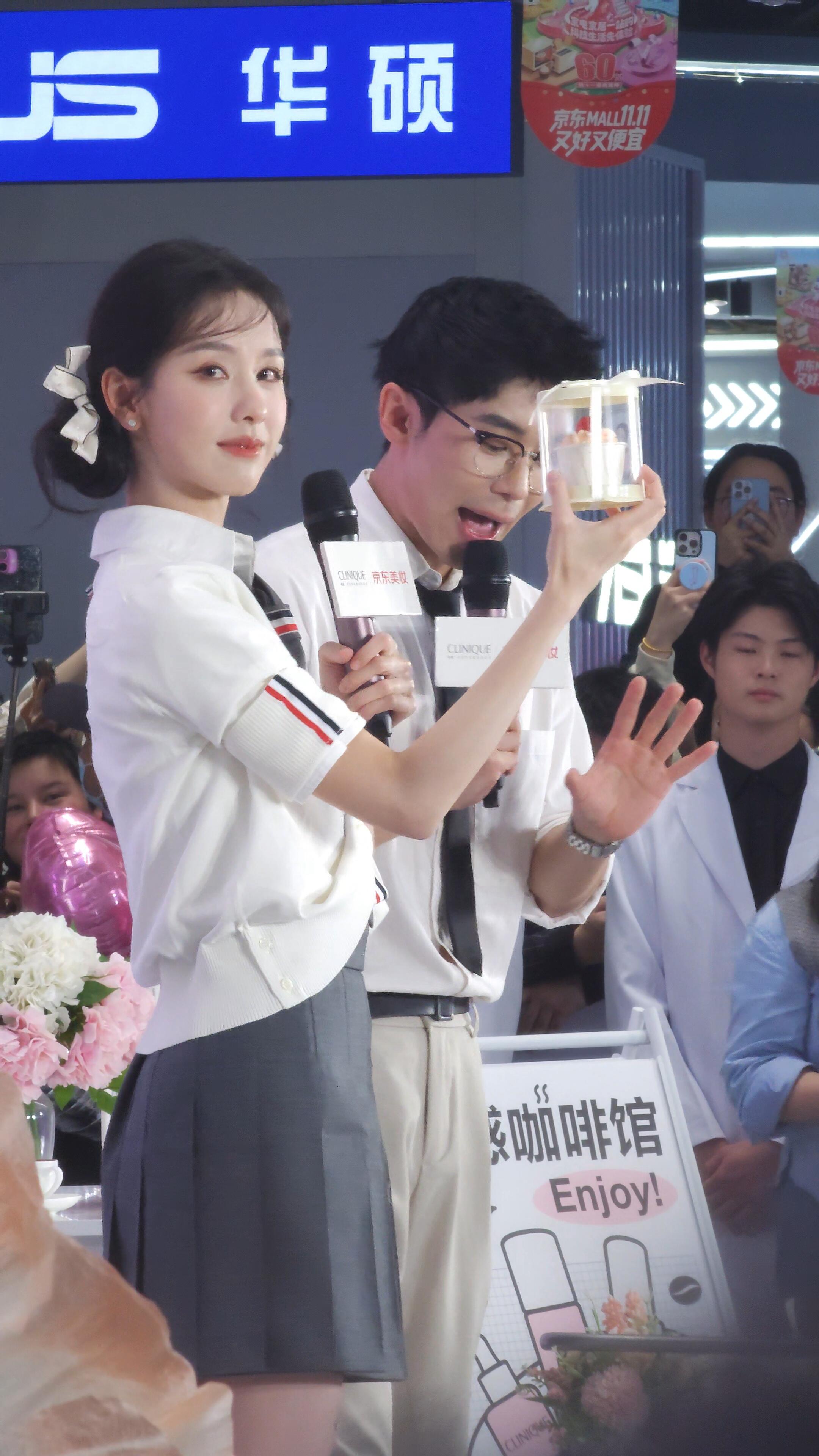 秦岚与辛芷蕾这是在比大小吗?