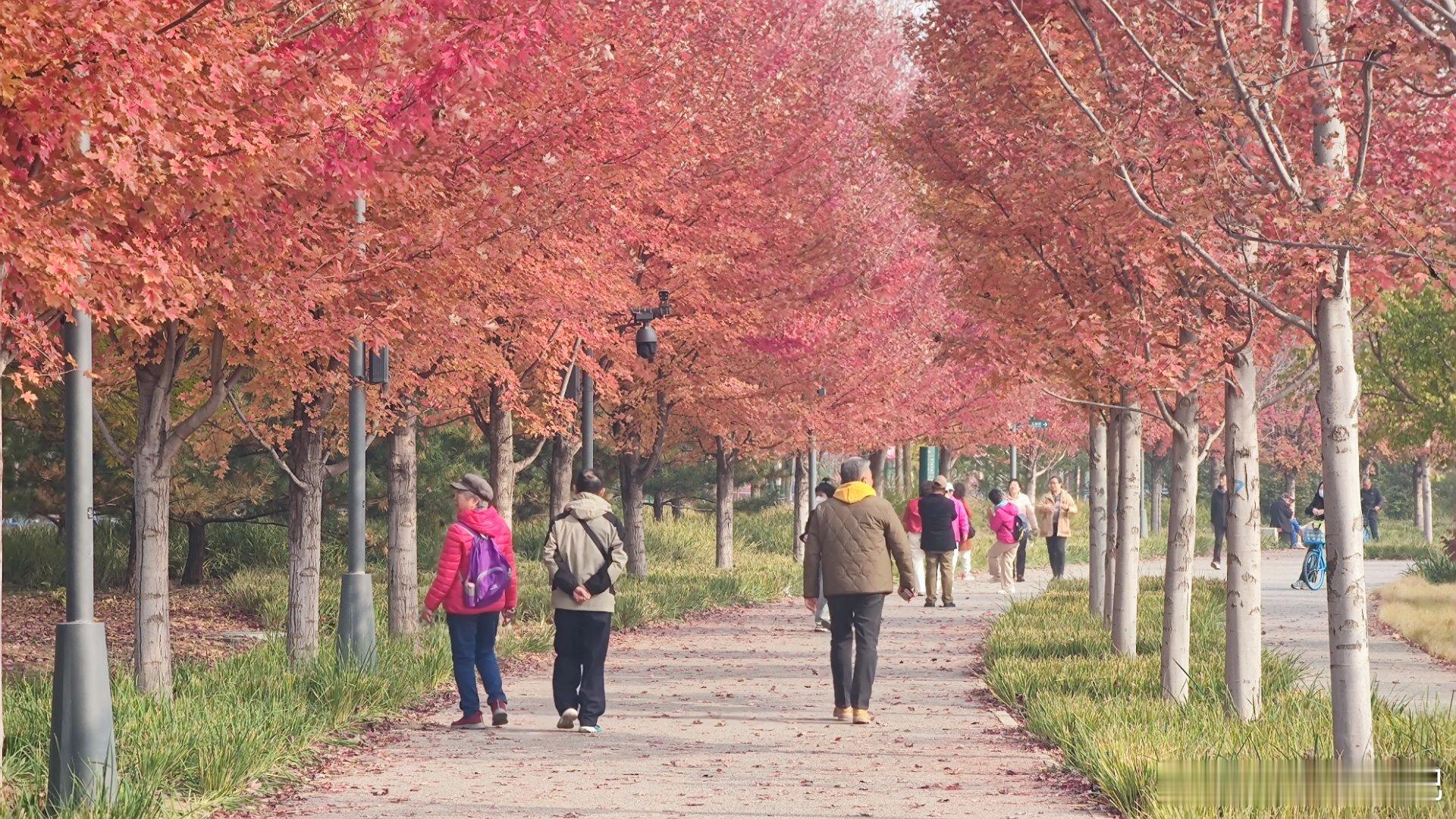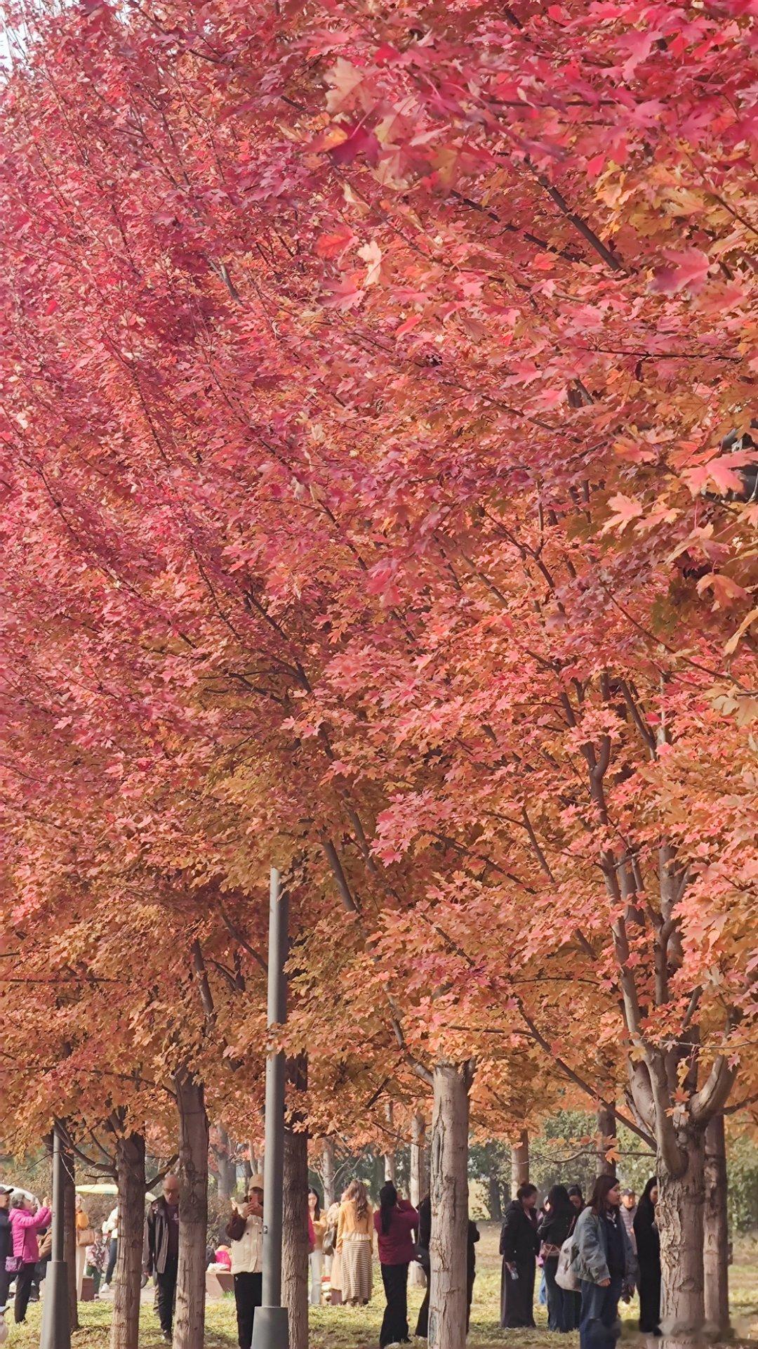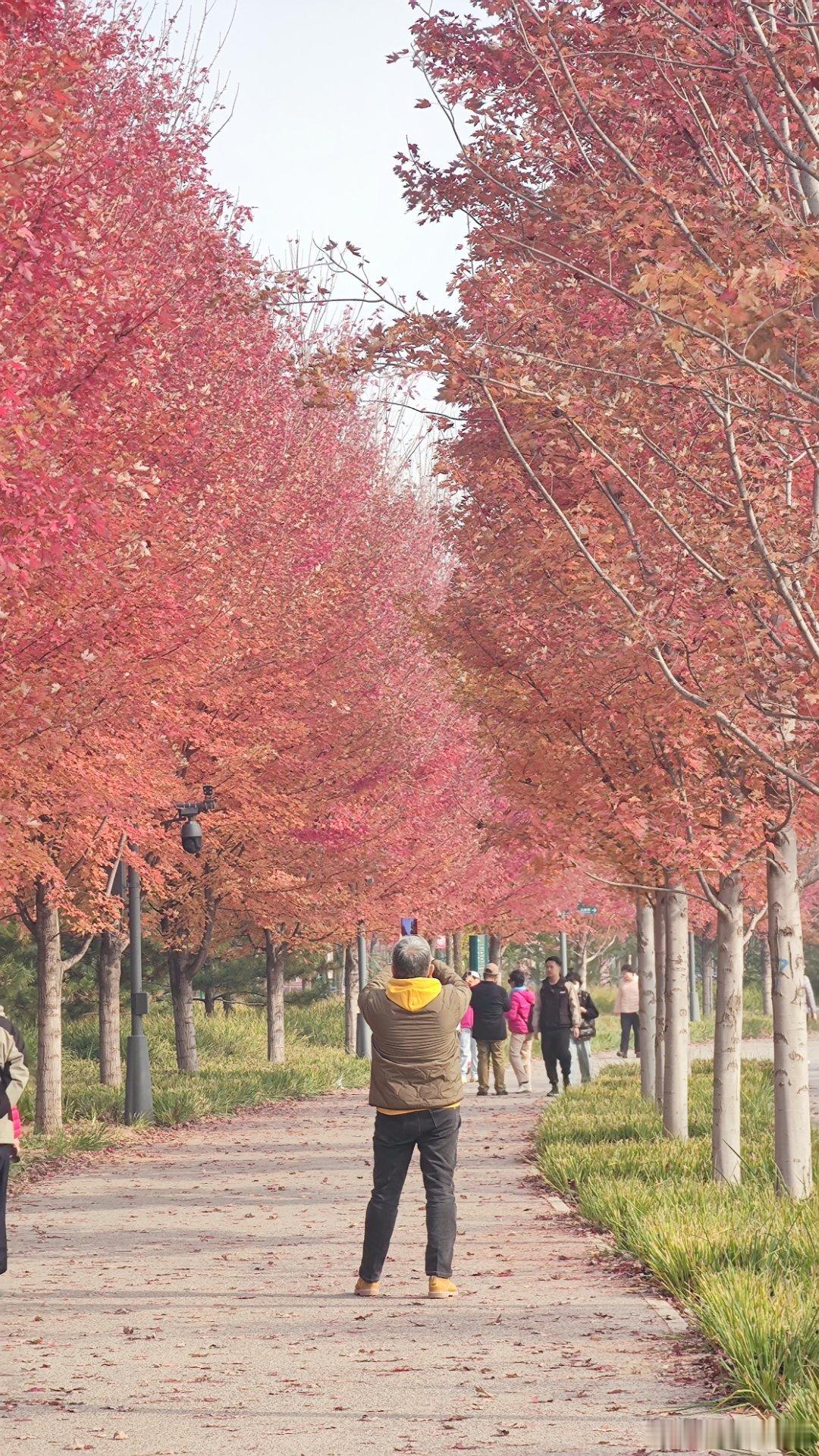城市绿心森林公园红枫大道,已经红的似火摄影