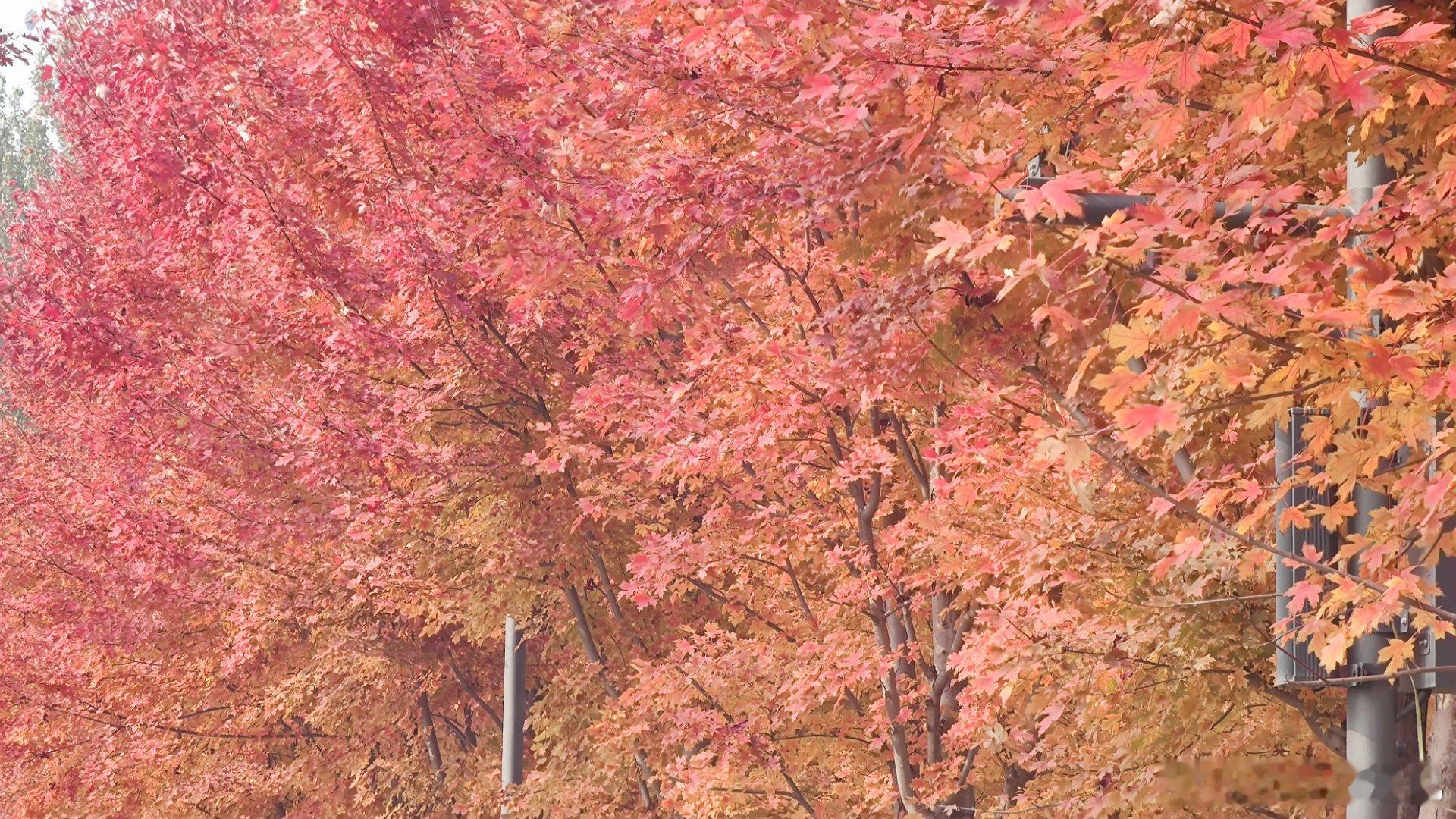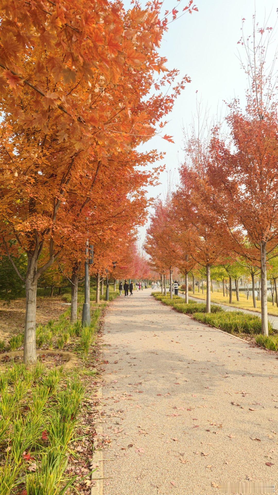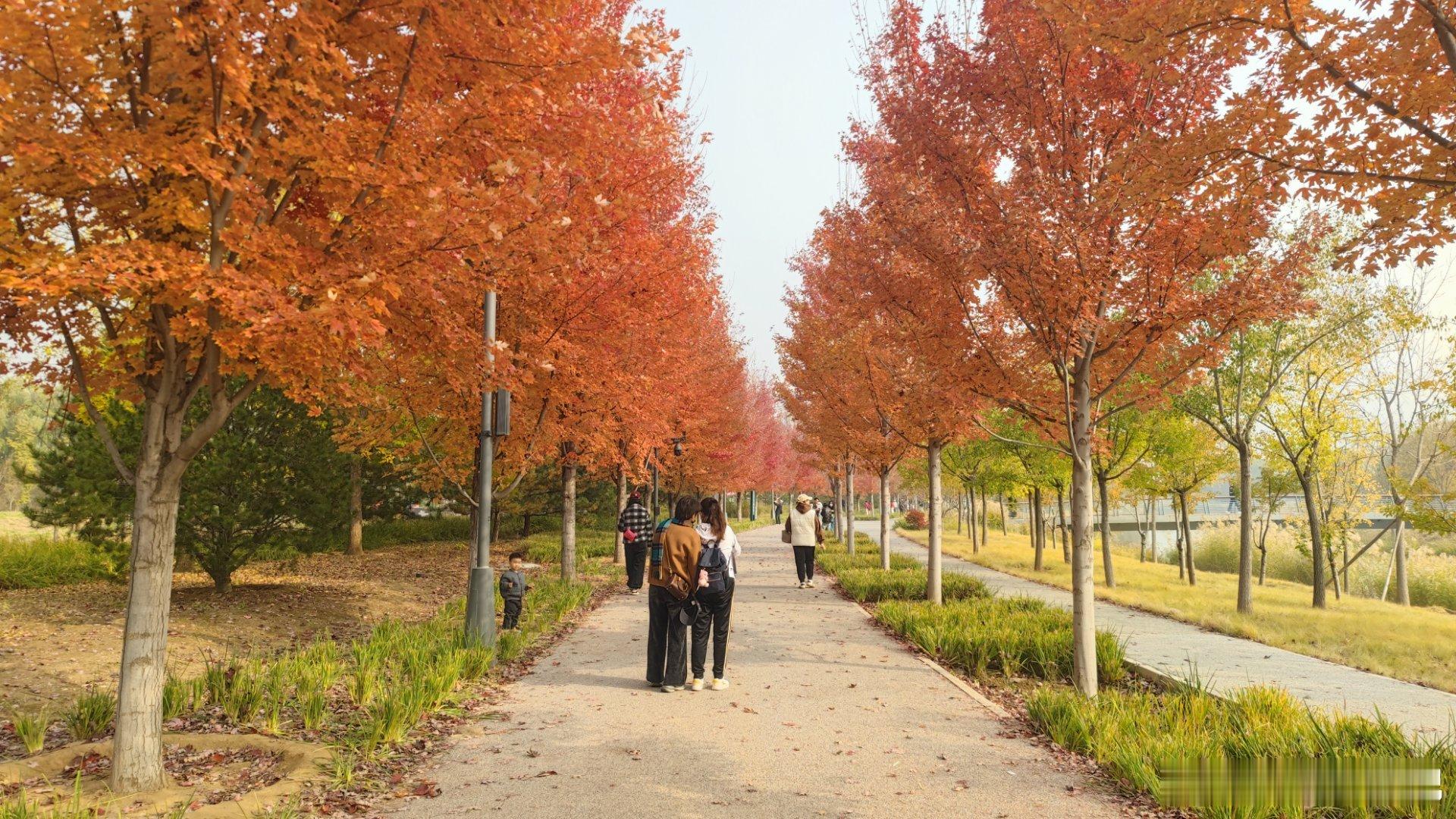 城市绿心森林公园红枫大道,已经红的似火摄影