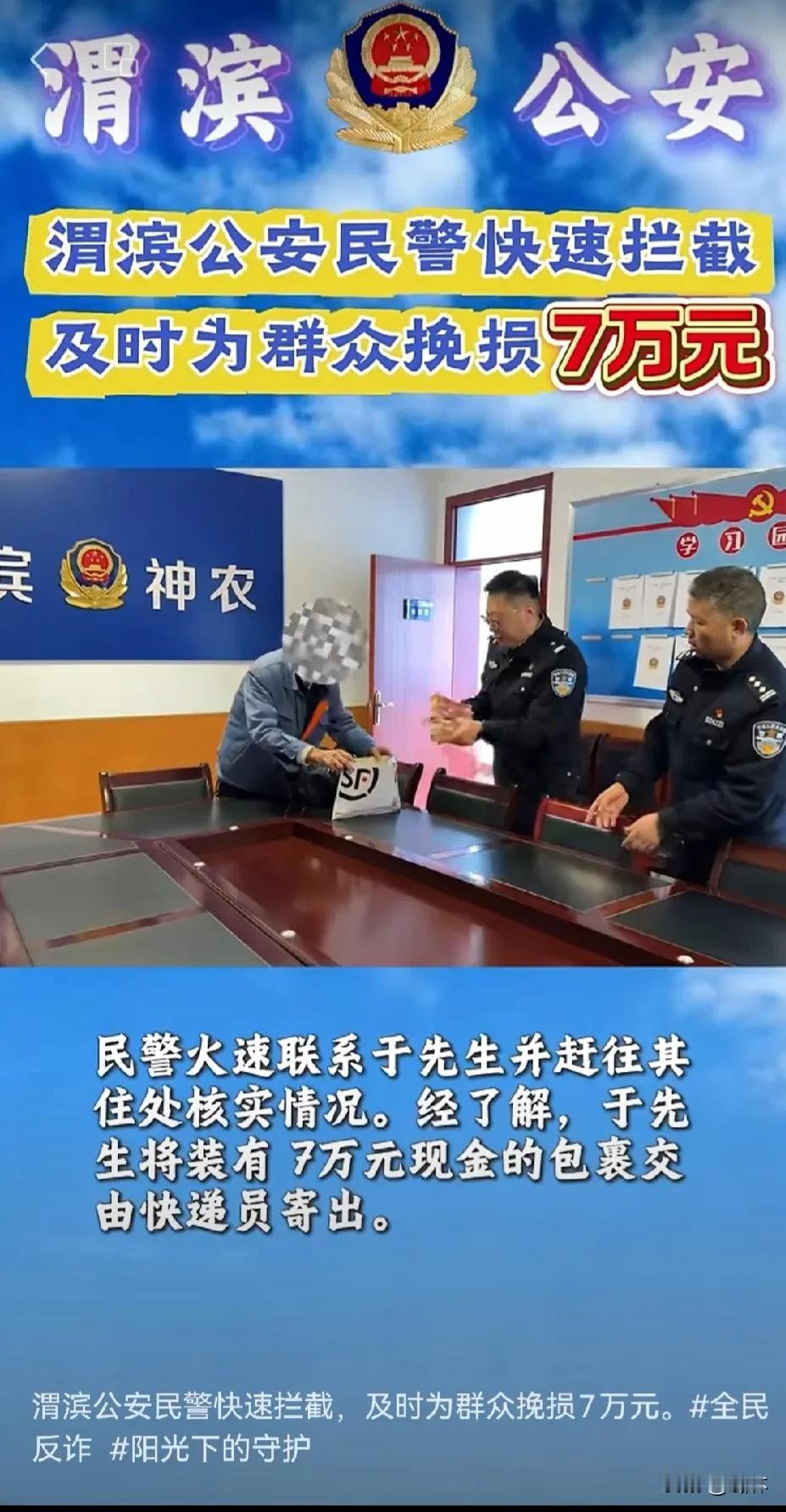 渭滨公安民警快速拦截,及时为群众挽损7万元。