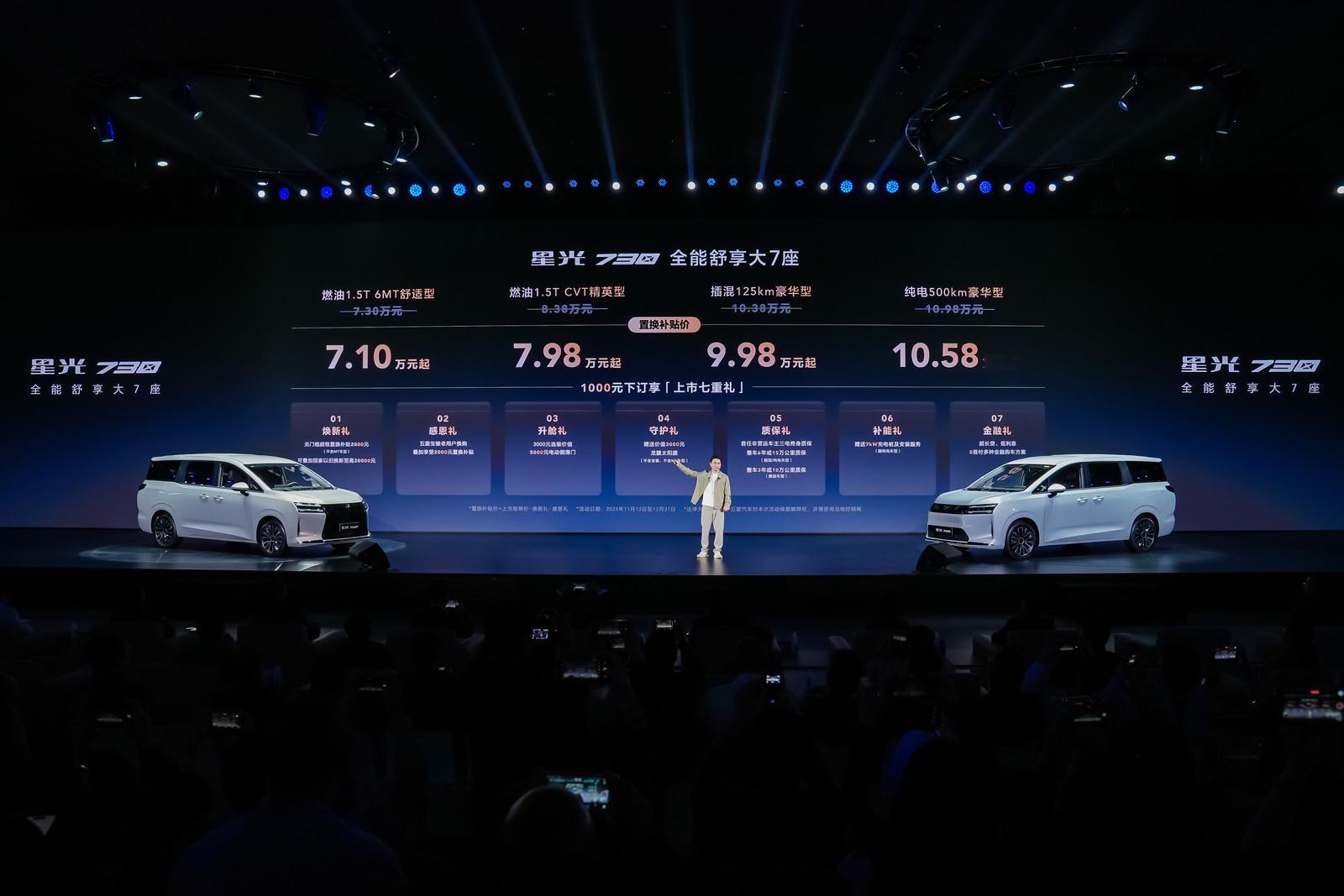 星光730正式上市,置换补贴价7.10-10.58万元,同时现在1000元下订还有7重礼。果然比预售价还要低,预售价就已经低于预期了,所以到现在为止累计订单已经突破了3万台,这样的热度对于MPV来说非常难得。还是那句话,因为这个价位的星光730对标的已经不仅仅是同价位MPV,还包括SUV——我相信有很多原本打算买SUV的人,最终选择了星光730。其实星光730做到的很简单:以前很多家庭不是不想买MPV,而是符合自己要求的买不起;星光730把这类车带到了他们能够接受的价位。有侧滑门,且加3000元可以选装电动侧滑门——不仅实用,更是MPV的标志,但以前很多同价位MPV却没有。空间更是越级表现,曾经能做到同样第三排体验的MPV至少价格两倍起步,同价位SUV的话想都别想。更难得的是后悬挂还是独立悬挂。同时,星光730还有一个巨大优势是提供三种动力:插混、燃油和纯电全都有。插混还获得了【2025年中国⼼⼗佳发动机及混动系统】及【中汽中⼼⾼品质混动认证】奖,靠实力成为极具质价比的全能动力标杆,不去逼迫用户强制选择,把选择权交给用户——这可必须点赞。配置同样很高就不罗列了,反正很希望看到星光730大卖,这样就说明中国汽车市场更加成熟了:更纯粹、更实用、更好用,功能更多但角色更专注的MPV,终于开始走向家庭用车的主流选购车型。