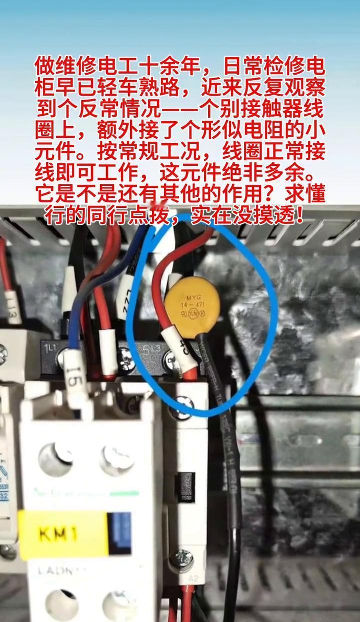 电工师傅一眼就看出不对劲——这小东西,不是多出来的,是命根子。 接触器一断电,电弧能炸飞线圈。 这玩意儿,就是给它兜底的。 别看它小,施耐德高端货早都内置了。 你拆了它,不是省钱,是给设备埋雷。 别信“看着像多余”,老设备上的小元件,都是前辈用故障换来的经验。 该留的,一毫都不能动。