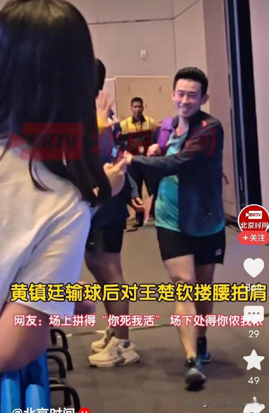 王楚钦和黄镇廷真是好样的!球打得好,人更是没得说,善良又暖心。 这场比赛中,王楚钦的表现深深打“服”了黄镇廷。最动人的是赛后那一刻——黄镇廷自然走向王楚钦,搂了搂他的腰,又拍了拍他的肩膀。 场上全力相争,是对手;场下搂腰拍肩,是兄弟。这简单的动作,比任何话语都更有力量。体育最美的样子不止于输赢,更是这份相互的尊重与强者的惺惺相惜。 王楚钦赢下这场比赛不容易,也从黄哥身上学到了很多:要敢打敢拼,把握好关键分,稳住心态。希望好好总结,继续努力,加油!永远支持你打好每一场球!