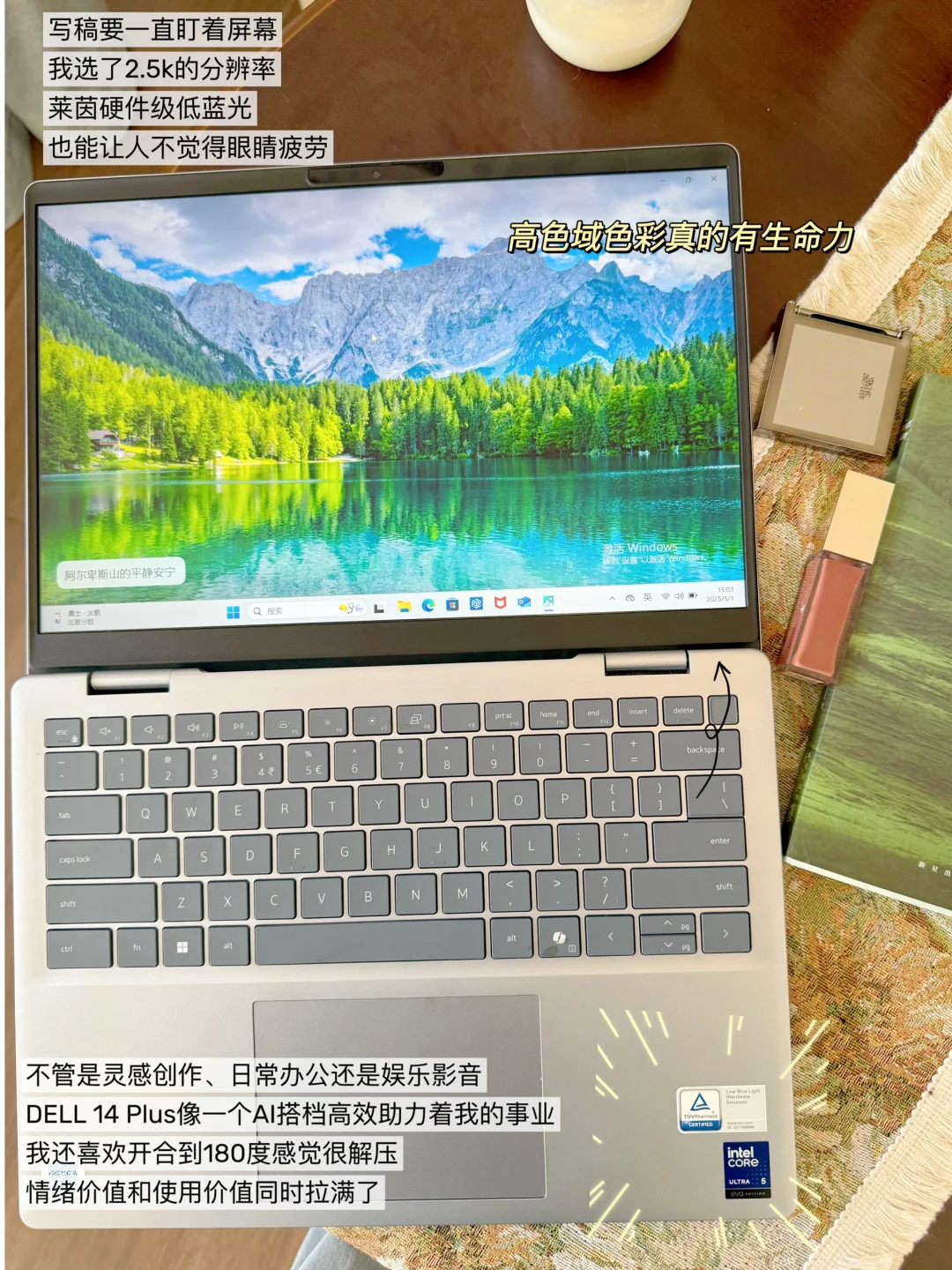 它现在是我的事业搭子兼生活神搭。不管是灵感创作、日常办公还是娱乐影音,DELL 14 Plus像一个AI搭档高效助力着我的事业。带着它中午跑咖啡馆,喝杯拿铁、写写稿件,剪剪视频[电影R]三小时生产力拉满。打开了高效办公的新世界。事业女讲究的就是一个效率,AI时代追求的就是事半功倍,认准酷睿Ultra,AI帮你打工提效~