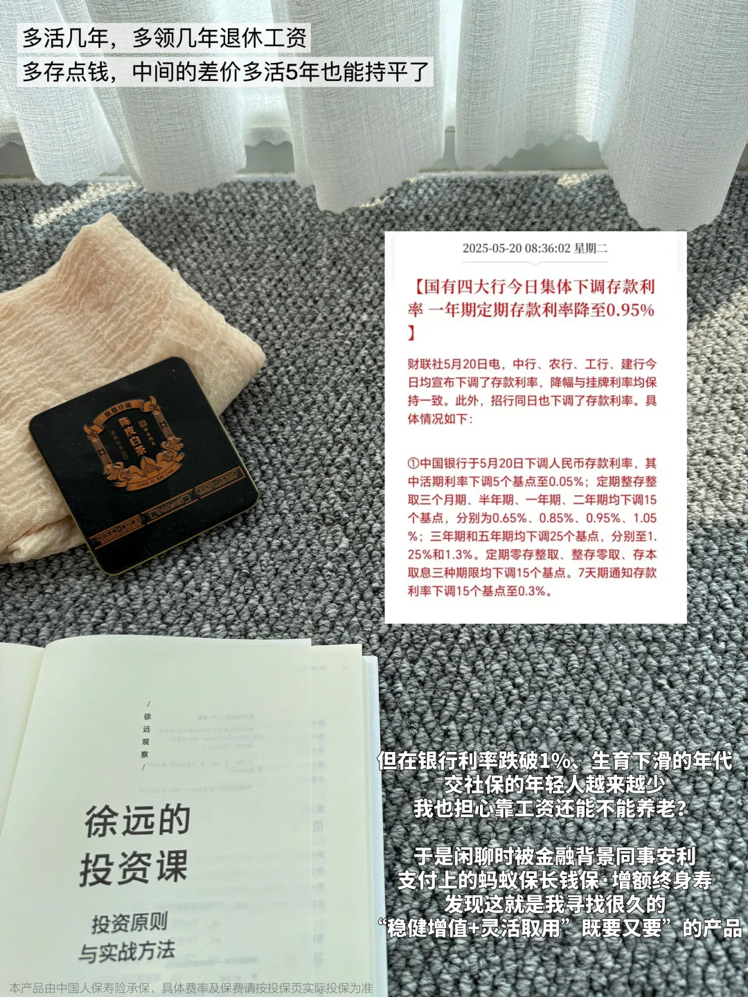 不过8月31日就正式下架。预定利率从2.5%降低到2.0%后,同样30岁投入100w的话,40年内这个0.5%会让我们少收益45w!所以下架前可以去支付宝搜长钱保[清单R]找到蚂蚁保长钱保·增额终身寿规划下。年轻时存下的每一分“慢钱”,都是老了的底气。毕竟体制内最大的红利就是时间带来的复利,越老越吃香。