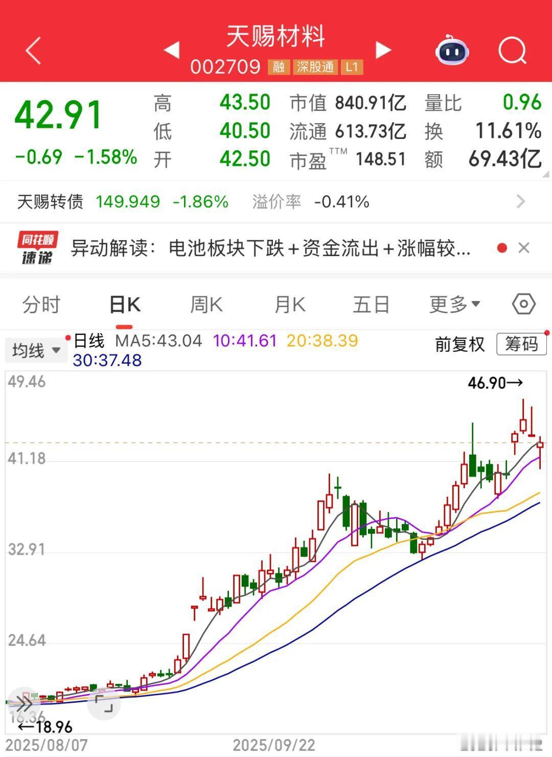 六氟磷酸锂疯涨,带飞了谁的股价? 媒体:国际金融报 2025-11-12 22:20 每隔几年,六氟磷酸锂的价格就会在资本市场掀起一阵狂潮。 11月11日,六氟磷酸锂的价格已涨到12.85万元/吨。 数据显示,今年7月中旬至10月底,六氟磷酸锂价格从4.98万元/吨涨至11.08万元/吨,涨幅超120%。其中,10月单月涨幅达76%。有预测称,未来可能会突破20万元关口。 股价先飞 六氟磷酸锂有着“白色石油”之称,主要用于生产锂离子电池电解液,而电解液是动力电池和储能电池的四大主材之一,该原材料占电解液成本的50%左右。目前,全球95%的六氟磷酸锂产能集中在中国。 六氟磷酸锂的疯长搅乱了整个锂电产业链,其价格飞涨首先带飞了不少产业链公司股价。 11月12日,天际股份股价报收46.71元/股,再度涨停。该公司股价在8月底时还不足10元/股,如今连番涨停板下,已经逼近50元/股,市值234亿元,年内累计涨幅超过300%,这是何等的疯狂。更不可思议的是,天际股份的六氟磷酸锂产能并不是最多,年产能3.7万吨/年(晶体法),只能排到行业第三而已。 天赐材料股价也从8月份的20元/股涨至11月12日的42.91元/股,总市值840.91亿元。该公司六氟磷酸锂产能为11万吨/年(液态为主),全球市占率37%,稳居行业第一,其电解液自供率超过95%。 多氟多股价最近也迎来过涨停板,8月初至今,股价也从不足13元/股涨至11月12日的34.27元/股,总市值407亿元。该公司六氟磷酸锂产能6.5万吨/年(晶体法为主),产品纯度达99.999%,专供高镍三元电池,出口韩国、欧洲。前三季度净利润同比增长407.74%。 除了以上三家,石大胜华、新宙邦、永太科技、宏源药业、深圳新星也有六氟磷酸锂产能。这些公司的股价在三个月里均出现了大幅上涨。 多家公司股价的上涨,也吸引了摩根大通、高盛、巴克莱等外资机构以及知名牛散孙惠刚纷纷进场。业内人士分析称,真正的赢家或许是早在2023年底便以2.8亿元入股的瑞泰新材,其持有的3004.3万股,目前市值已超10亿元,浮盈接近三倍。 仍有上涨空间 记者注意到,上一轮六氟磷酸锂的价格大涨,还是在2022年第一季度,当时一度冲到60万元/吨的天价,原因在于新能源汽车市场爆发,动力电池需求大增,导致六氟磷酸锂供需紧张,叠加碳酸锂涨价,最终价格创下新高。 2023年,六氟磷酸锂价格开始大跌,2024年跌至5万元/吨的成本线附近。 自2025年7月触底后,六氟磷酸锂价格又开始疯狂反弹,7月18日仅4.98万元/吨,10月31日涨到11万元/吨,11月7日更是突破12万元/吨,4个月涨幅高达141%。 这一轮上涨的原因是什么? 专业人士分析认为, 从需求端看,动力电池今年需求保持稳定增长,2025年1—9月,我国新能源汽车销量同比增长34.55%,带动动力电池装机量增长42.52%。然而,随着136号文出台,储能项目在6月1日前出现一波“抢装潮”,储能电池的需求却出现了激增,这是本轮六氟磷酸锂价格暴涨的核心驱动因素之一。数据显示,2025年前三季度,我国储能锂电池出货量达430GWh,同比增长近100%。
