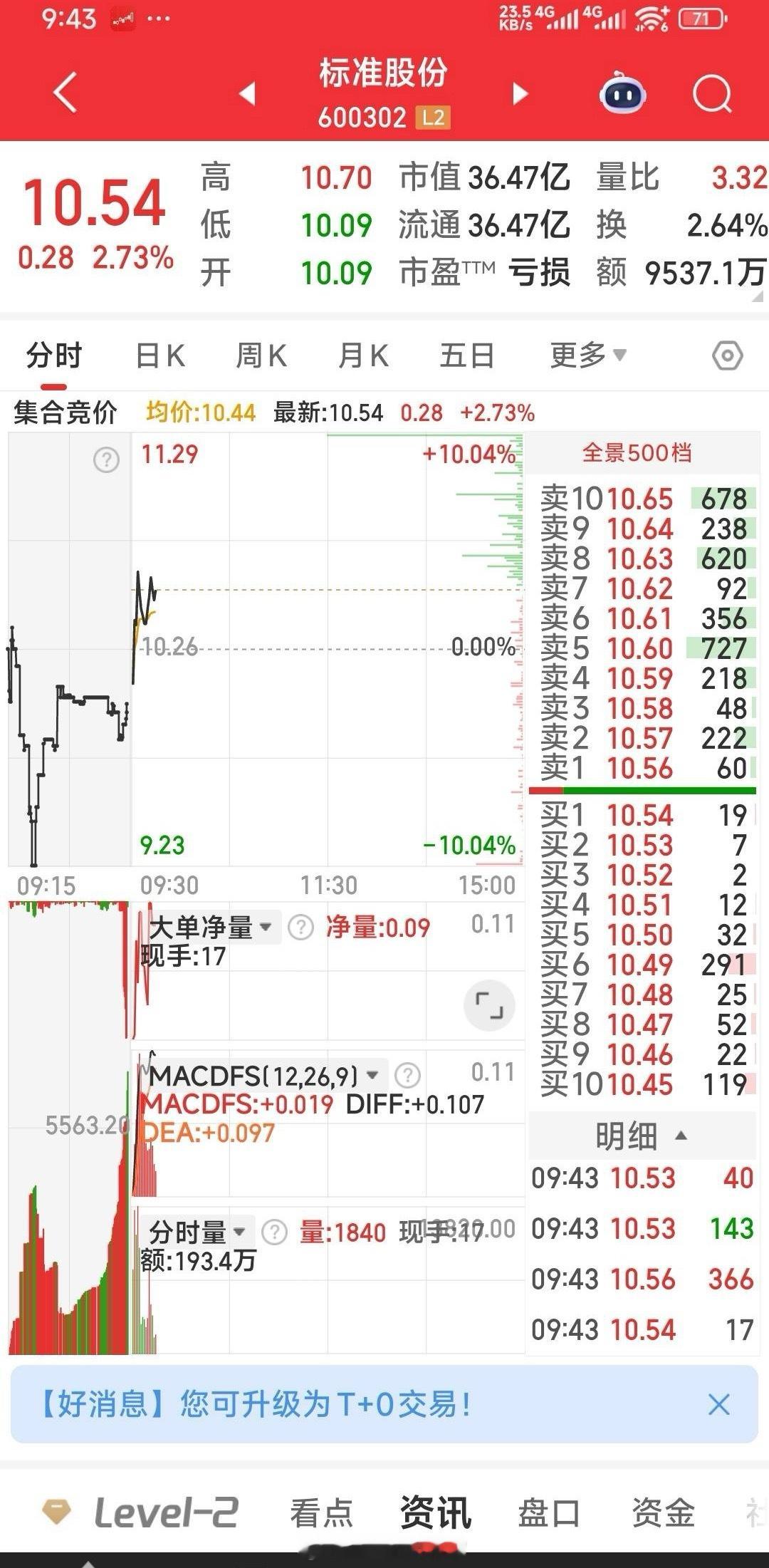 标准股份,今天加仓做了一把T+0