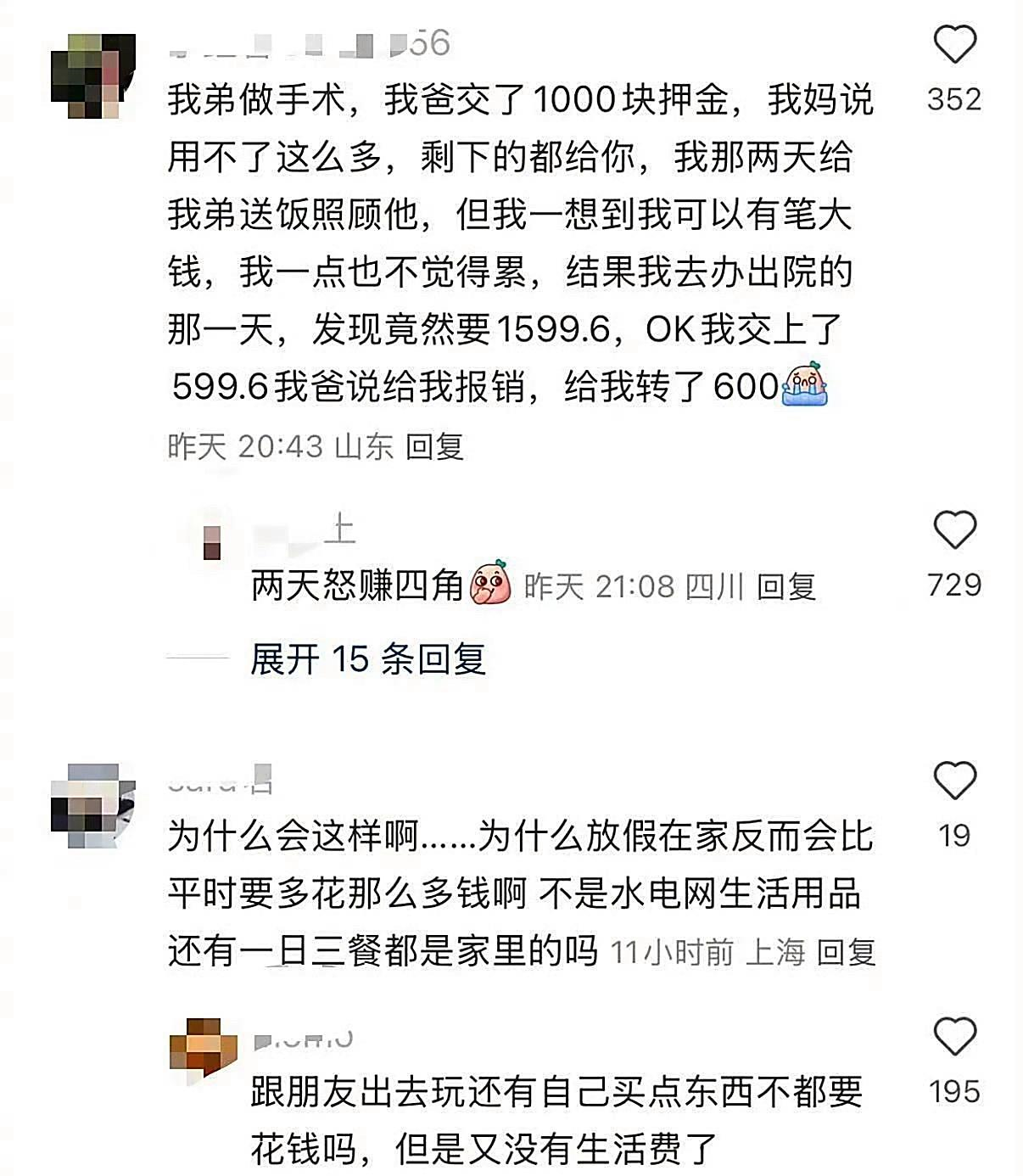 我上大学那会回家没生活费,给我20去买菜买了菜贪了两块,拼夕夕买了个手机壳还是啥玩意儿先用后付,十块钱的东西,硬是还不起,趁我爹打麻将的时候偷偷转了8块才还上。