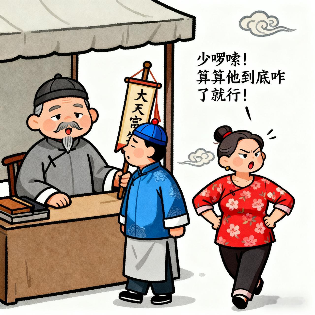 古代笑话 有个算卦先生给镇上掌柜的看相, 掌柜说近来总犯迷糊。 先生刚要细问缘由, 掌柜的婆娘在旁插了话: “少啰嗦!算算他到底咋了就行!” 先生只好闭了嘴, 盯着掌柜的脸瞅了半晌, 手指头掐来算去,最后憋出一句: “掌柜这面相…… 像是心里装着事没处说, 约莫是……今早被谁抢了话头?” 掌柜“嘿”地笑出了声,婆娘脸一热, 倒比当事人先红了脸—— 原来夫妻俩早上为账本吵了架,气还没消呢。民间小笑话