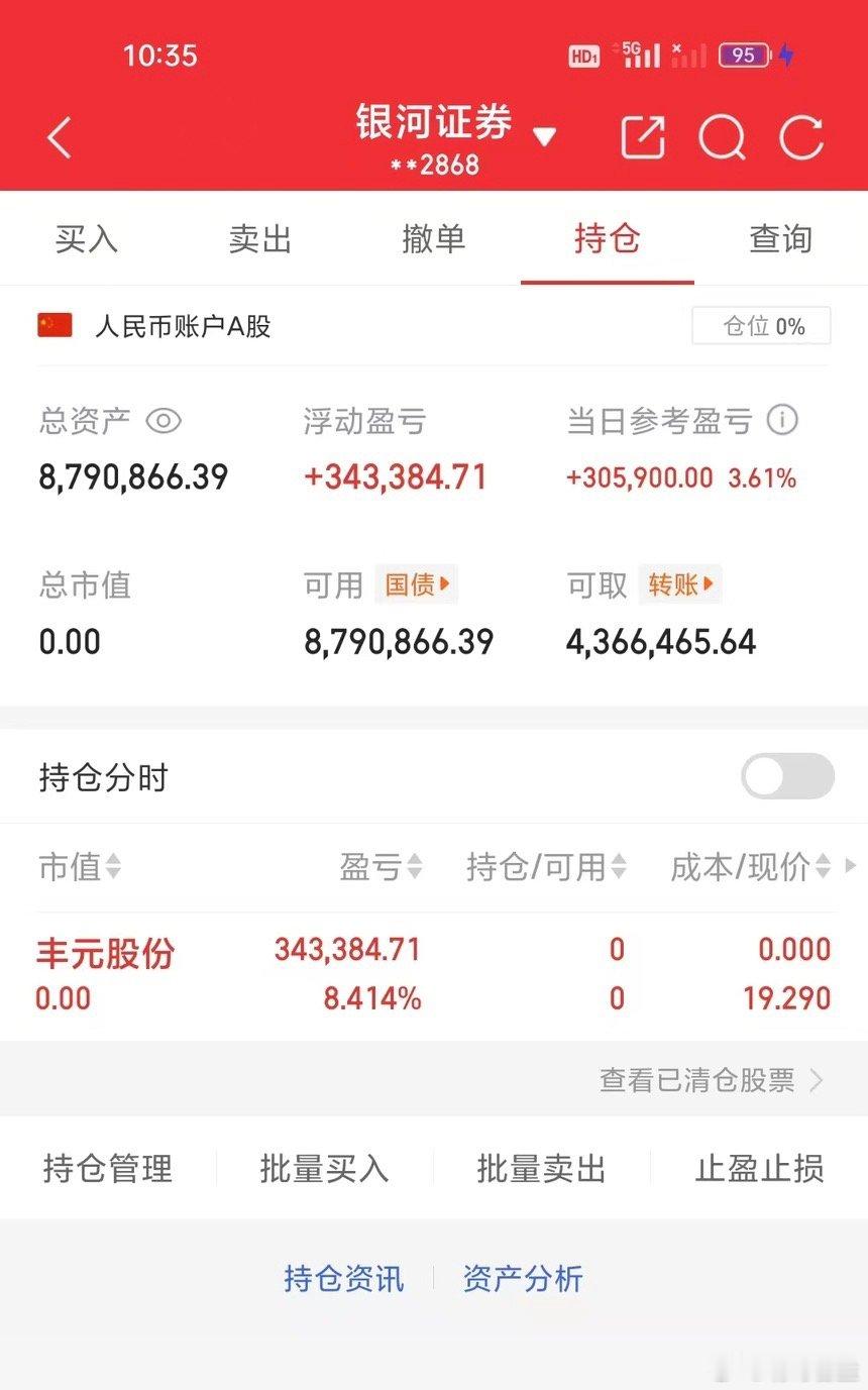 实盘挑战(第22天) • 初始本金:500万元 • 年度目标:2500万元(实现1年翻五倍) ·今日卖出: 丰元股份欢迎各位朋友前来监督验证!看到的兄弟麻烦点个赞,评论区扣“178”支持一下(萌哥看盘) ~我会每天坚持更新操作动态! 重要提醒:每位投资者的风险承受能力、操作习惯各不相同,我的持仓和操作仅为个人选择,不构成投资建议。请切勿盲目跟风,投资盈亏由个人自行承担。