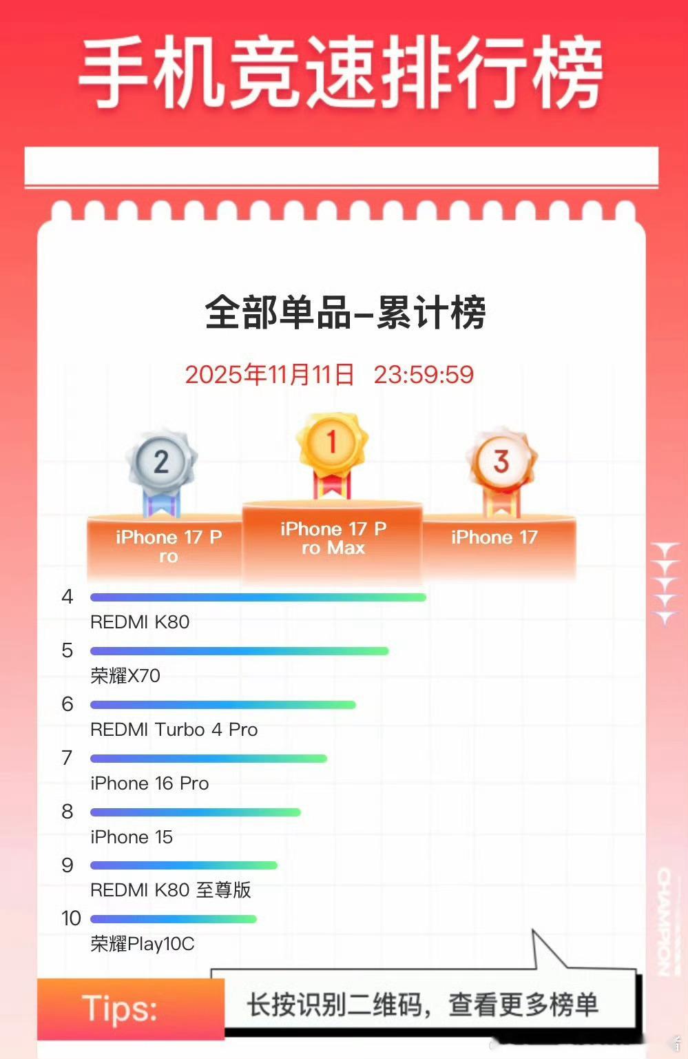 最强说不买但身体很诚实,今年的iPhone17系列卖爆了,国内销量即将突破一千万。双十一销量,iPhone17系列也是断层领先,在高端旗舰手机,苹果还是大部分用户的首选。