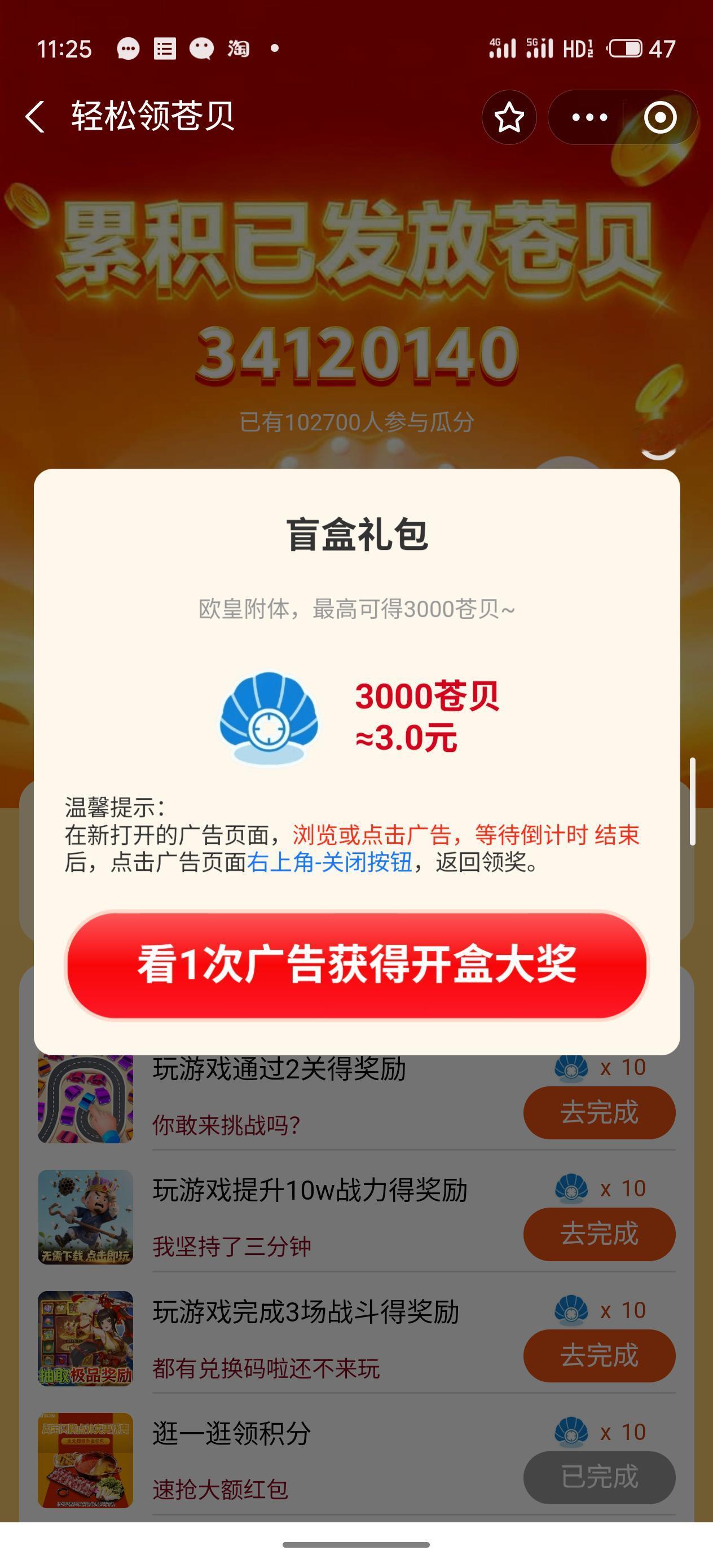 第二天 又提了0.5 总共耗时十来分钟 我不玩游戏,所以只完成10的任务还有盲盒礼包 提现没啥障碍就是看一则广告 免费薅羊毛 APP薅羊毛 你会通过薅羊毛攒钱吗