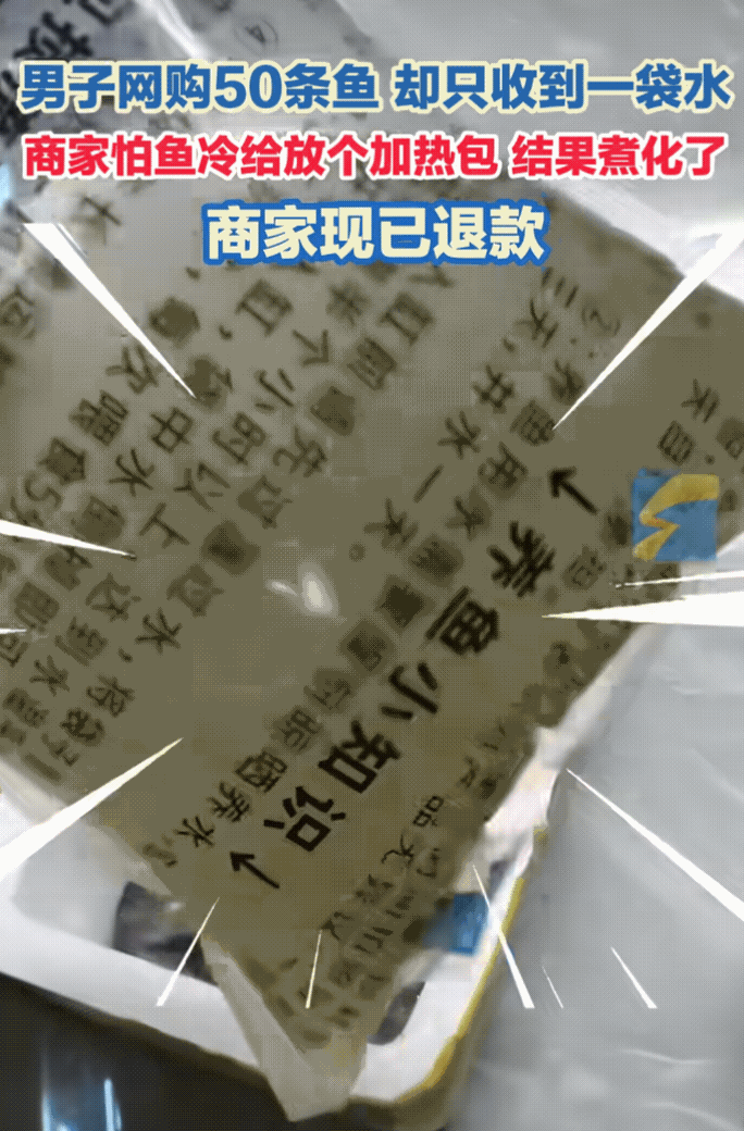 “太令人意外了!”辽宁抚顺一男子在网上购买了50条小鱼 ,结果加热包放的太大了,小鱼不见了。 不得不说这个男子也太“幸运”了吧!本来在网上买50条小鱼到家就可以放在鱼缸里的 ,结果由于天气比较冷,加热包太热了 ,令人意想不到的是小鱼都热化了,男子收到的只是一袋水 。 此事引起网友热议,有网友说:“东北天冷,早晚零下了,不加加热包到了怕成冰块。” 还有网友说:“那就不是一袋水了,是一袋鱼汤。” 也有网友说:“这种商家亏钱的,快递费,所以更多就是失误了。” 快递包装因当时所在地的环境和天气所决定 ,相信商家也没想到鱼会变成这个样子 。我知道会这样,还不如不放加热包。 想想那些大河里面的鱼冬天不也是在冰下面吗?依然没有冻死。小鱼应该真的是在密闭的快递包装里,再加上那么热的加热包,一定是被热没了 。 对此事,你有什么看法 ? 晒图笔记大赛 (信息来源:闪电新闻)
