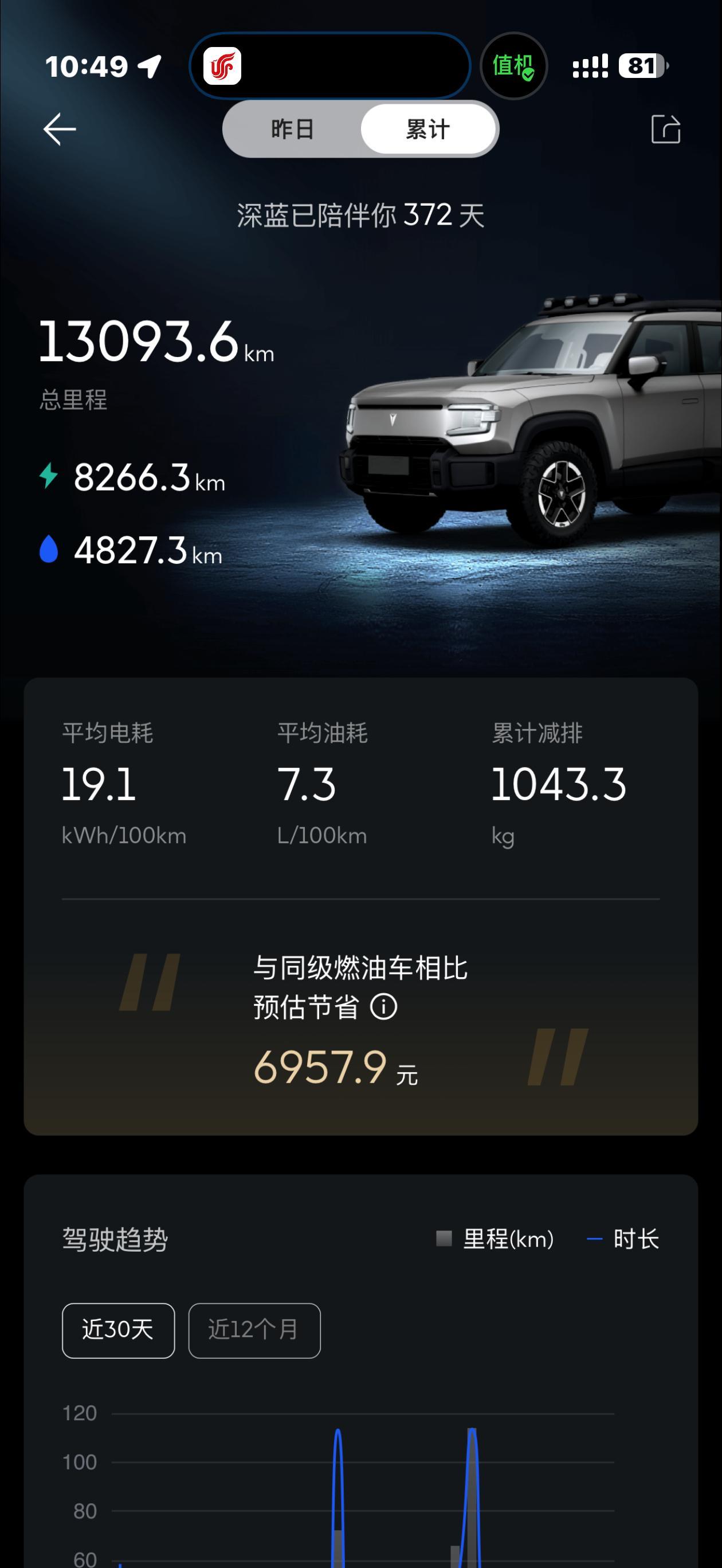 一年多才开了一万三千公里回去年底把YU7卖了明年开方盒子多跑跑