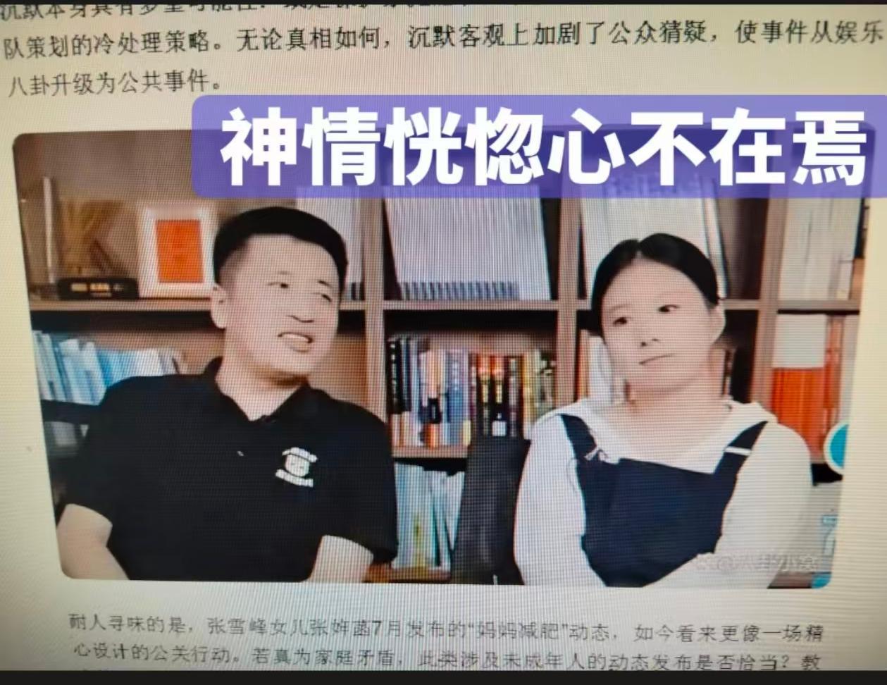 张雪峰是个大孝子,40多天就闪婚,因为他和前女友已经订婚,婚期也定好,亲朋好友都通知到了,但是前女友却变卦了! 为了满足父母对自己30岁之前结婚的厚望,他果断换人,张雪峰当时已经是一个事业小成的潜力股,身边也不乏青睐者,于是有了现任妻子,结婚之前为了让岳父岳母同意,给女方父母说他俩在一起2年了,岳父母这才安心把女儿嫁给他。 张雪峰说妻子到现在都在坚持上班,为了给女儿做好榜样。 也难怪,李丽婧一个博士生怎么甘心在家做一名家庭主妇,老公再优秀,工作才是自己给自己的安全感。 张雪峰一直就是爱妻爱女儿的形象。但是他对演唱会的表现就很奇怪,网友说身边那位女士应该不是他的妻子。但是张直播带婚戒说婚姻自己没问题,又不说具体情况,网友说戴婚戒直播能说明什么问题? 不过他的说辞模凌两可,可进可退,这招高!