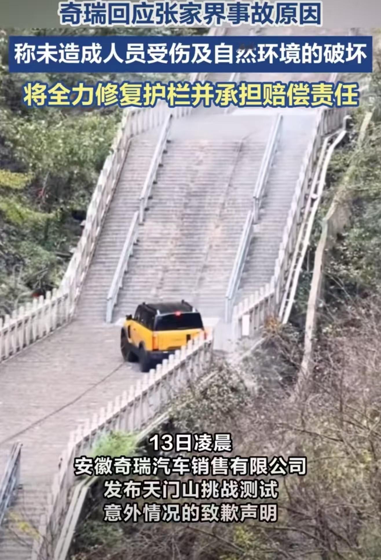 做活动肯定会想好后果,这次奇瑞的活动,提前把天梯封闭不对游客开放,也没未造成人员受伤以及自然环境的破坏,奇瑞也主动承担修复费用,和给赔偿,在努力解决问题,我感觉是很好,没问题的