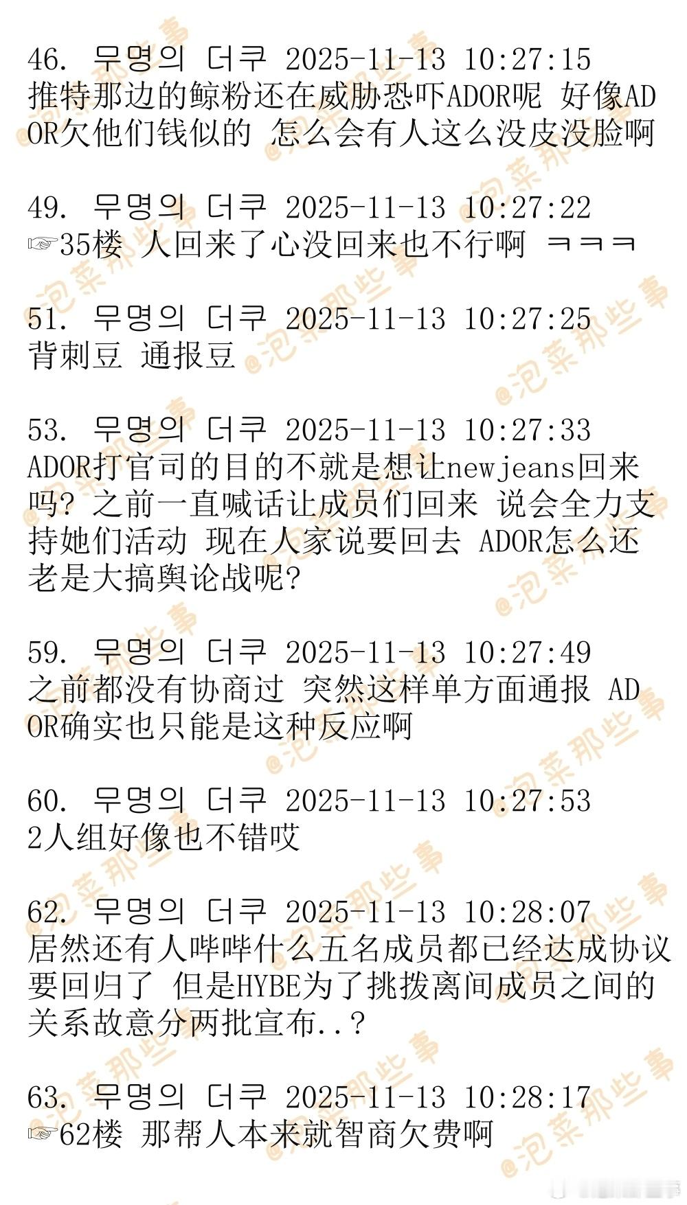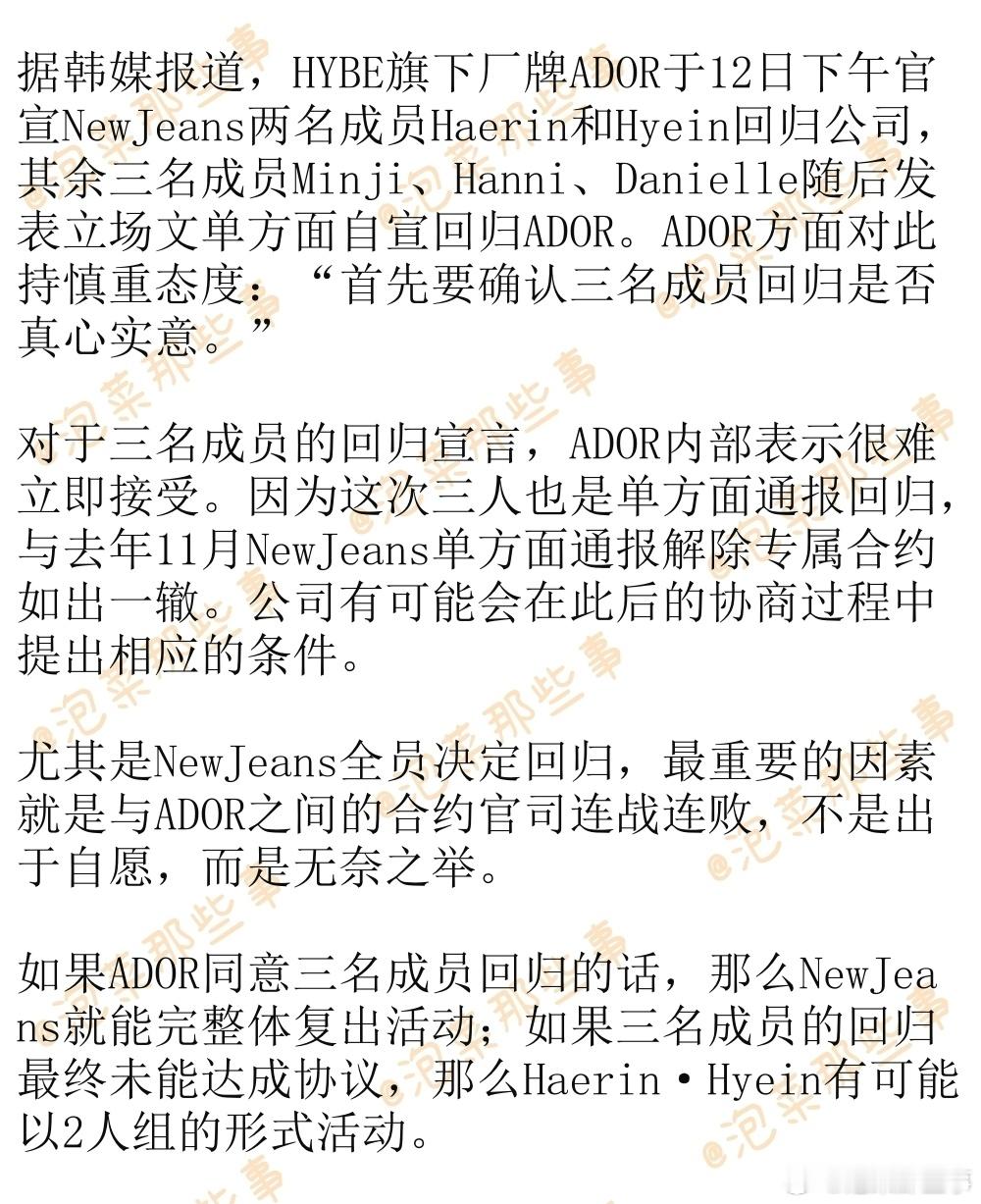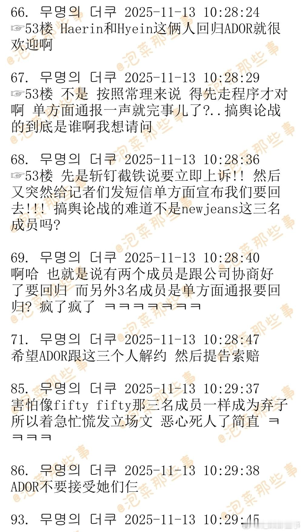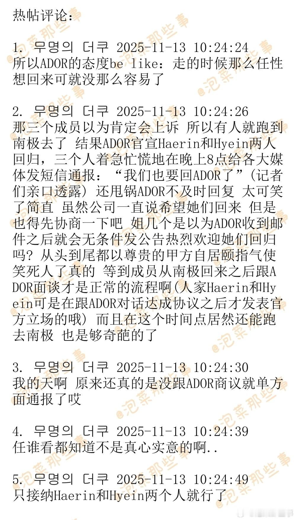 🔥🔥韩网900楼热帖评论翻译🔥🔥NewJeans三名成员自宣回归后ADOR内部意见 cr.theqoo