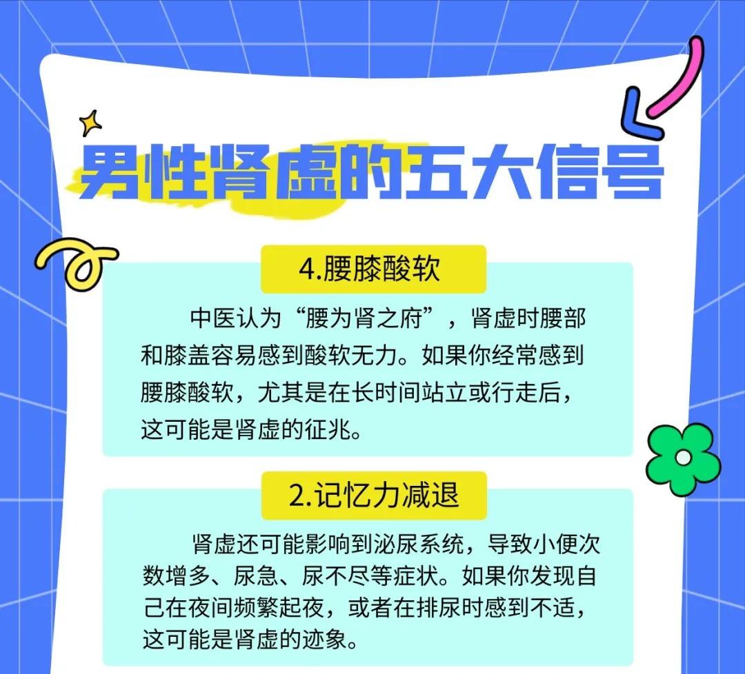 【肾虚四大症状,你中招了吗?】 症型一:肾阳亏虚型 症状表现:1.腰膝酸软