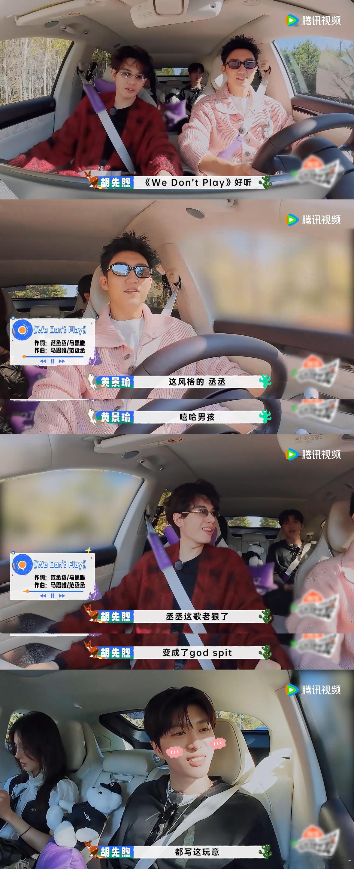车里播放范丞丞的歌,胡先煦回应“这歌老狠了”,黄景瑜都被他精准的段落分析惊讶,看