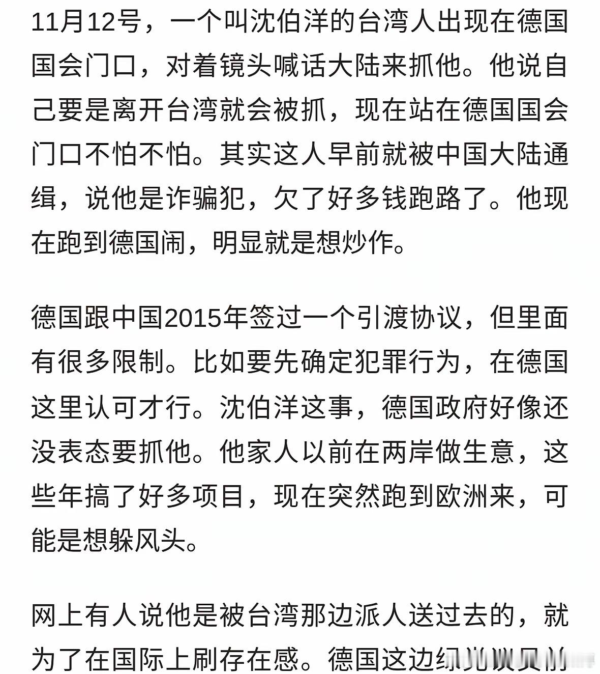 台湾富豪柏林街头叫板大陆,引渡条约悬而未决,德国暗流涌动。