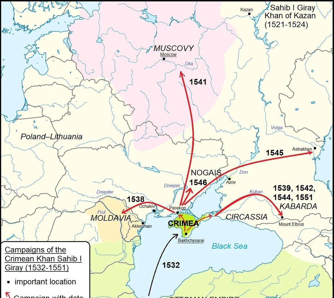 克里米亚汗王萨希卜一世·吉莱(1532-1551 年)的军事征战