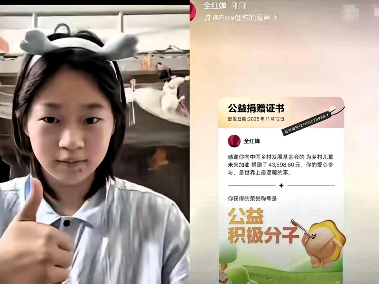 谁能想到,一场1小时的直播,能收获43598.6元打赏?更让人意外的是,下播后婵宝直接晒出捐赠证书,把这笔钱一分不留捐给了乡村儿童。 要知道,这可是很多普通人一年的工资。有人辛苦搬砖一整年,都挣不到这么多;有人省吃俭用攒钱养家,连给自己买件新衣服都舍不得。可婵宝不一样,她从贫困家庭走出来,懂普通人的难,更懂乡村孩子的渴望。 不是说普通人不善良,而是我们大多被生活裹挟,连顾好自己和家人都要拼尽全力。而婵宝,用自己的影响力,把网友的喜爱变成了实实在在的温暖,这份清醒和格局,真的太圈粉了。 你觉得婵宝最打动你的是什么?是冠军的光环,还是这份纯粹的善意?