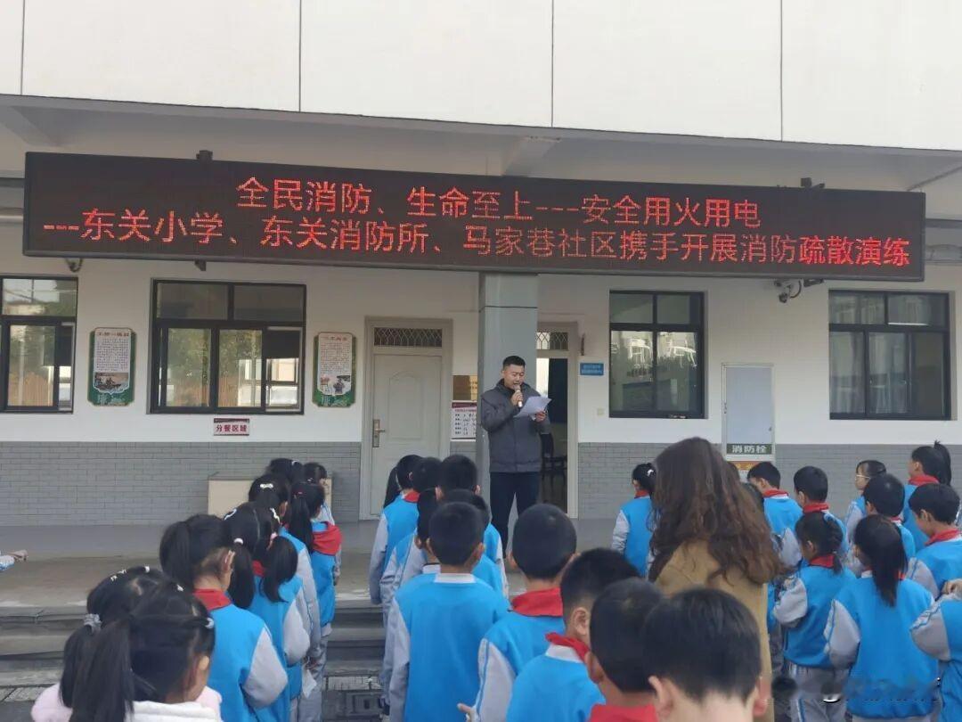 为确保本次演练活动安全有序进行,学校成立消防安全演练专项工作小组,制定了详细的《消防安全应急演练方案》,明确了疏散路线、岗位职责和注意事项,召开了专题会议,对演练流程进行了全面安排。各班级在演练前开展了消防安全知识培训,为学生普及火场逃生知识与技能。 上午9时50分,随着消防警报响起,消防疏散演练正式拉开帷幕。各班级学生在班主任和搭班老师的带领下,按照预定疏散路线,弯腰低姿、捂住口鼻,有序向学校操场、中院撤离。 演练过程中,全体师生反应迅速、配合默契,整个疏散过程紧张有序。各楼层安全岗教师沉着指挥,确保疏散通道畅通无阻。演练结束后,东关消防所吴洋老师向全体师生讲解了灭火器使用方法和火灾的应对措施。火灾中产生的浓烟含有大量有毒气体,且蔓延速度极快。大量有毒烟气的吸入,极易造成窒息。吴洋老师强调在逃生时,必须用湿毛巾捂住口鼻、低姿前进。“如果遇到灾情,应该怎么做?”吴洋老师提醒到:保持镇定,大声呼喊“着火了”!并迅速按下就近的火灾报警按钮,同时拨打火警电话119,说清详细地址、火势情况。活动最后,学校安保处主任聂鑫老师进行总结:本次演练活动不仅是一次知识的传授,更是一次对消防安全认知的提升。它让我们真切地感受到,在熊熊烈火面前,科学的知识和正确的技能就是我们守护生命最坚实的盾牌。 附小集团东关学校将持续深化多方协同机制,以常态演练促能力提升,以精准防控堵安全漏洞,携手筑牢一道不可逾越的“防火墙”,为师生营造更加安全、稳定、和谐的育人环境。