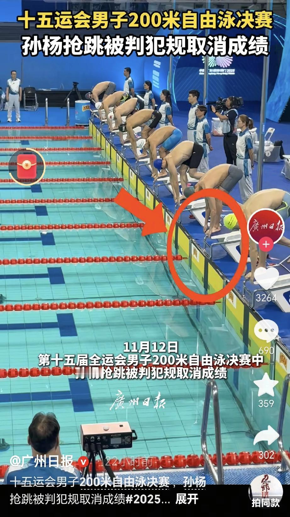 第十五届全运会游泳比赛上,孙杨这出意外可真是让大家没想到!在男子200米自由泳决赛里,他因为抢跳被取消了成绩,最后只排到了第八名。作为泳坛里的传奇人物,这难得一见的失误,让不少观众都觉得挺突然的。 赛后采访的时候,孙杨没找任何理由,就说:"抢跳一下子把状态打乱了,但没关系,调整好心态准备后面的集体项目。"就这么一句实在话,特别有老运动员的样子。要知道这可是他复出之后的关键比赛,能这么平静地接受失误,真挺不容易的。 有现场观众录下的视频能看到,孙杨知道成绩被取消时,只是轻轻摇了摇头,没多说什么,马上就给旁边的队友鼓了鼓掌。这种运动员该有的样子,比拿金牌还让人佩服。有网友就说:"这才是我们认识的孙杨!" 从之前的一些风波到现在回到全运会赛场,孙杨的每一步都让人特别关注。这次失误说不定就是个新开始,就像他说的,集体项目才是真正考验人的时候。你觉得这位泳池里的老将,还能不能再拼出好成绩呢?