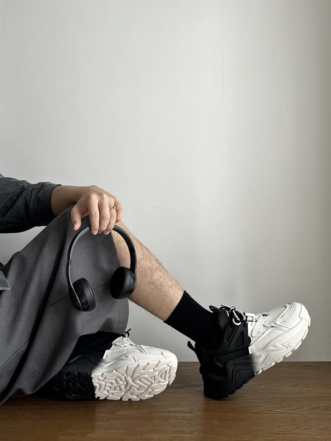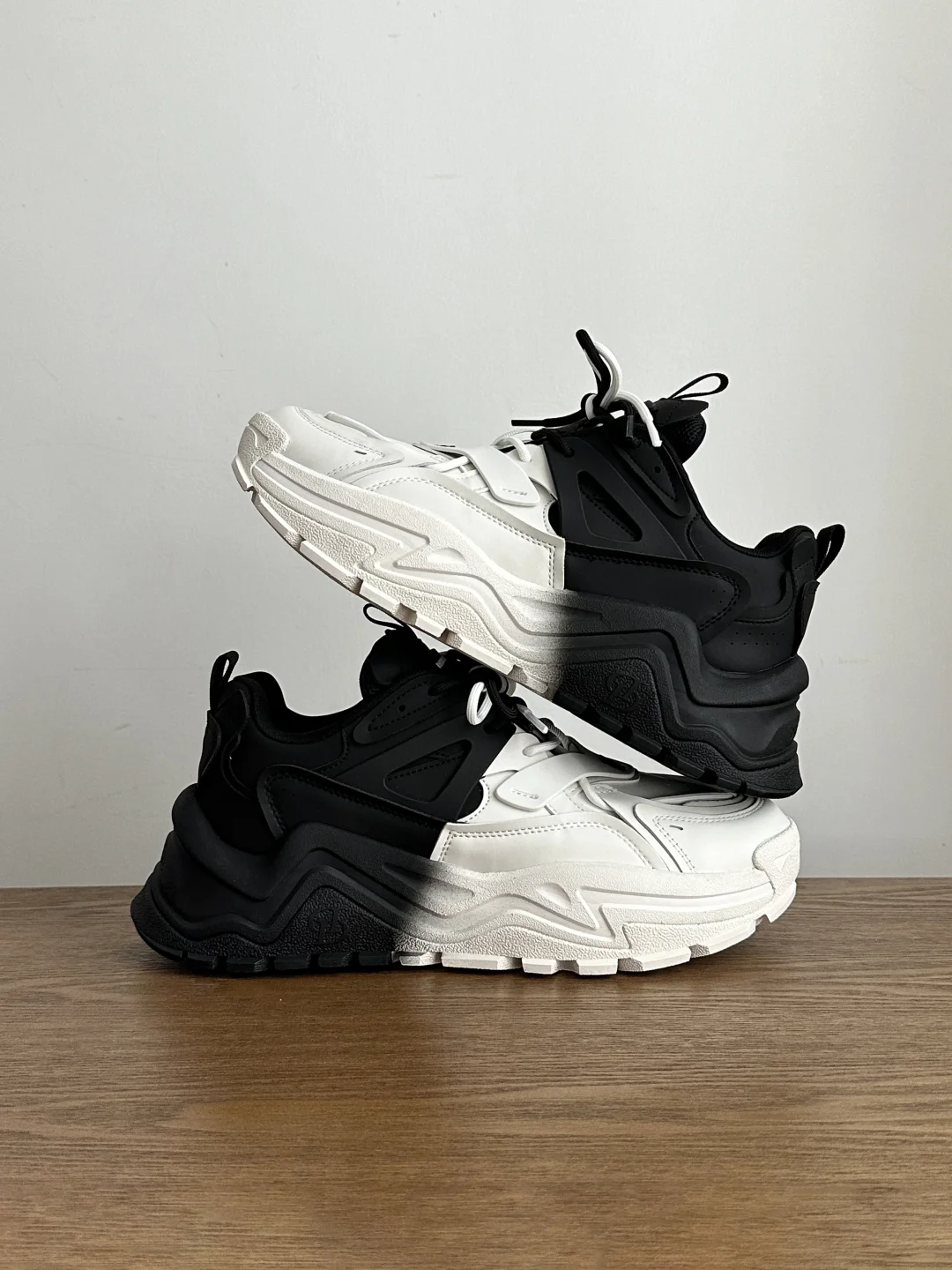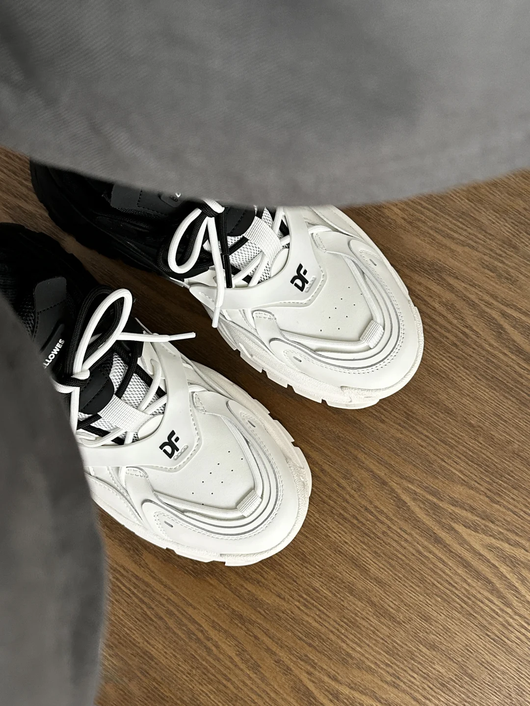 终于懂明星为什么喜欢穿黛西法罗了,被白鹿私服种草的黛西法罗芒果鞋,男生穿也超可!选了经典白拼黑配色,撞色设计感超绝,完全不挑风格,实物比照片还惊艳 鞋面拼色超显干净,芒果曲线看着就比普通老爹鞋灵动,双鞋带的系法就很像定制款。 脚感也很绝,软乎乎的鞋垫走路像踩棉花。重点是5cm增高太懂男生了,拉长比例超显腿长,配运动裤也不臃肿。 重要场合需要身高撑气场我直接焊脚上