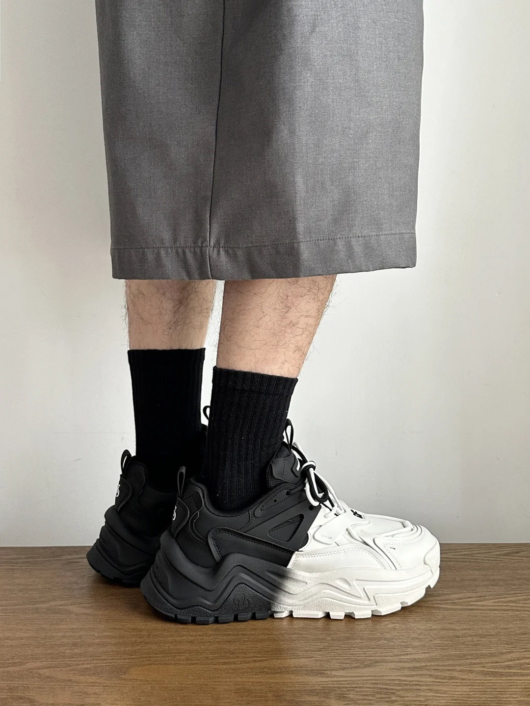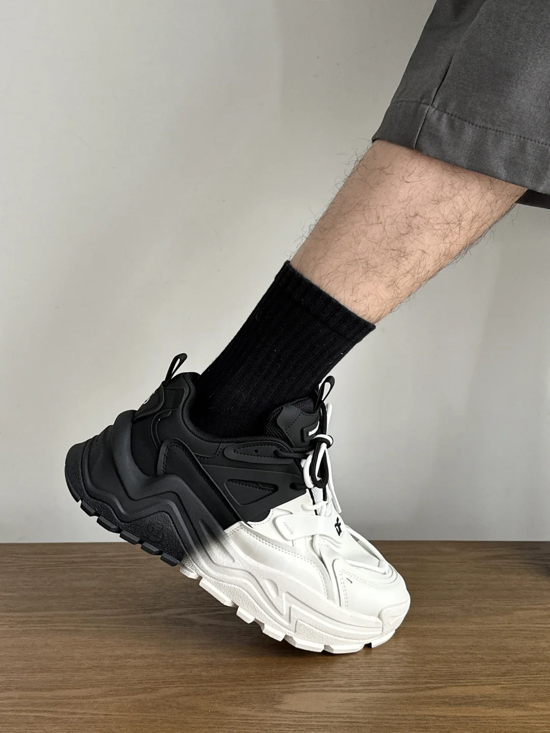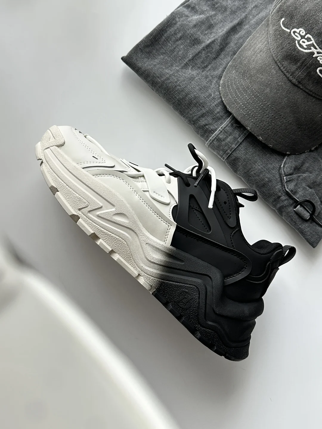 终于懂明星为什么喜欢穿黛西法罗了,被白鹿私服种草的黛西法罗芒果鞋,男生穿也超可!选了经典白拼黑配色,撞色设计感超绝,完全不挑风格,实物比照片还惊艳 鞋面拼色超显干净,芒果曲线看着就比普通老爹鞋灵动,双鞋带的系法就很像定制款。 脚感也很绝,软乎乎的鞋垫走路像踩棉花。重点是5cm增高太懂男生了,拉长比例超显腿长,配运动裤也不臃肿。 重要场合需要身高撑气场我直接焊脚上
