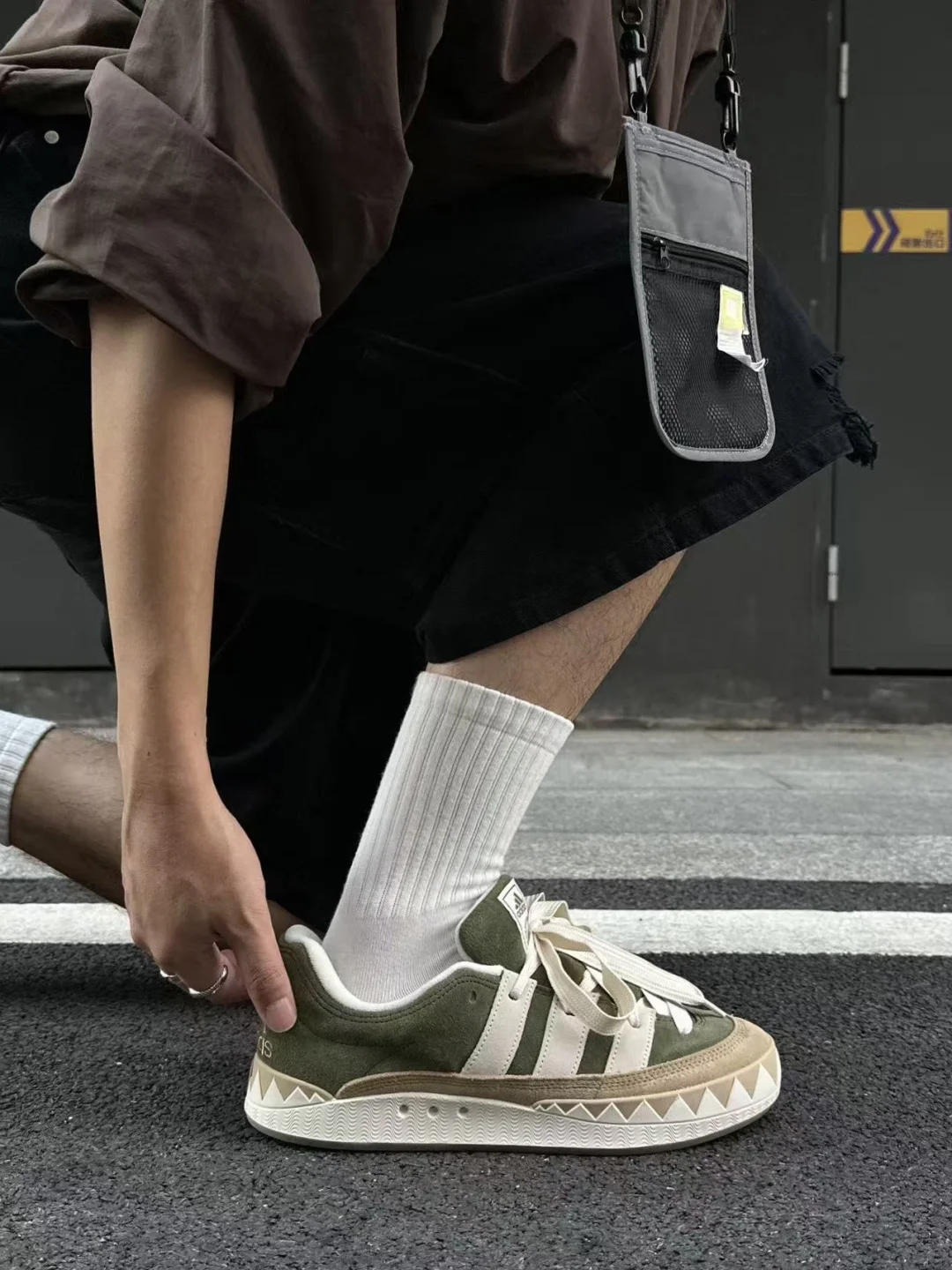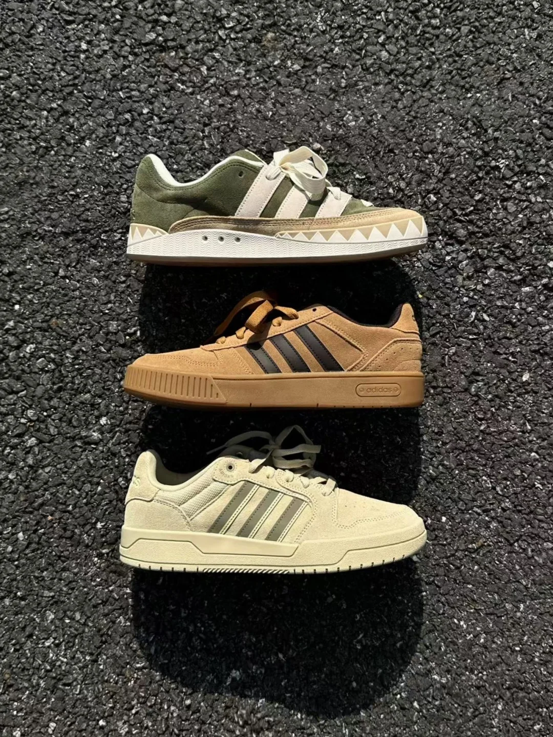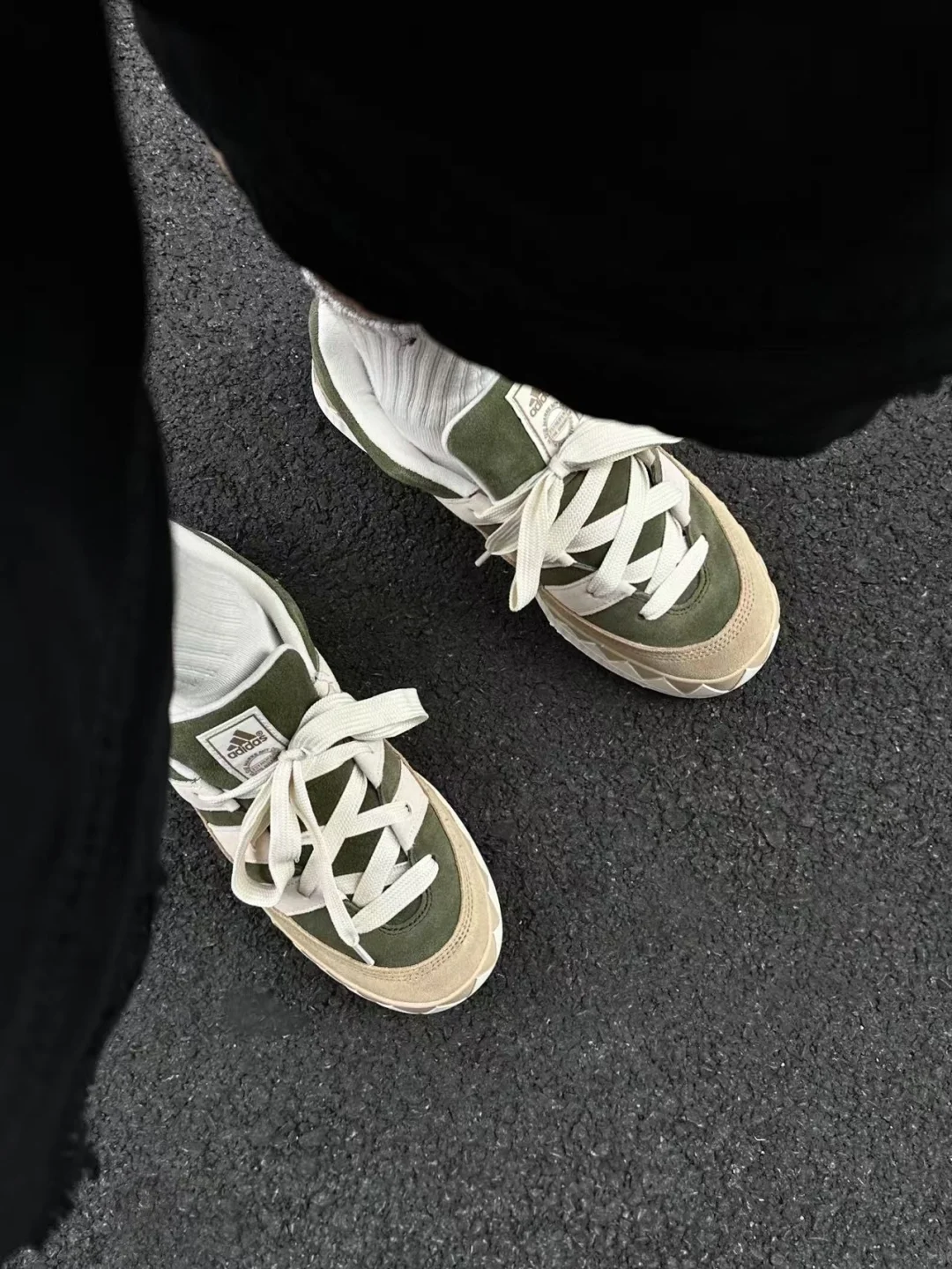 今年秋天最爱的三双adidas神仙配色鞋!完美适配秋季氛围感穿搭🍂 ➊ D-PAD板鞋 经典复古板鞋+暖调棕配色,像踩在落叶上的温柔感!麂皮鞋面质感满分,搭配卡其裤/牛仔外套瞬间美式复古拿捏~ ➋ ADIMATIC 鲨鱼面包鞋 胖乎乎鞋型超可爱!低饱和绿显白又吸睛,穿厚袜配阔腿裤慵懒又街头,脚感软糯像踩面包,增高效果悄悄+3cm左右✨ ➌ ENTRAP板鞋 这双轻到离谱!网面拼接透气耐穿,浅芥末绿清爽不挑人,配运动裤/工装马甲少年感拉满,暴走一天都不累脚~ 三双都是秋冬百搭神器,棕色复古、绿色个性、芥末绿清爽,适配不同风格但都秋日感满分!