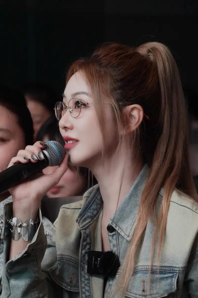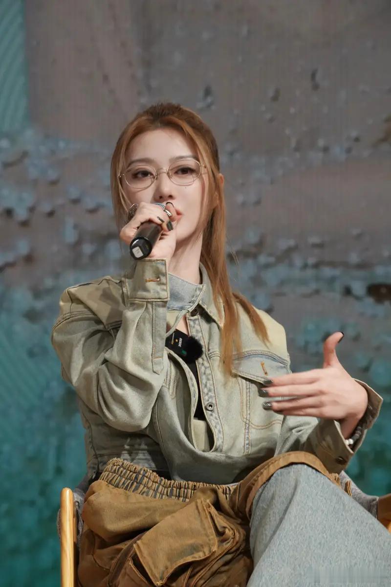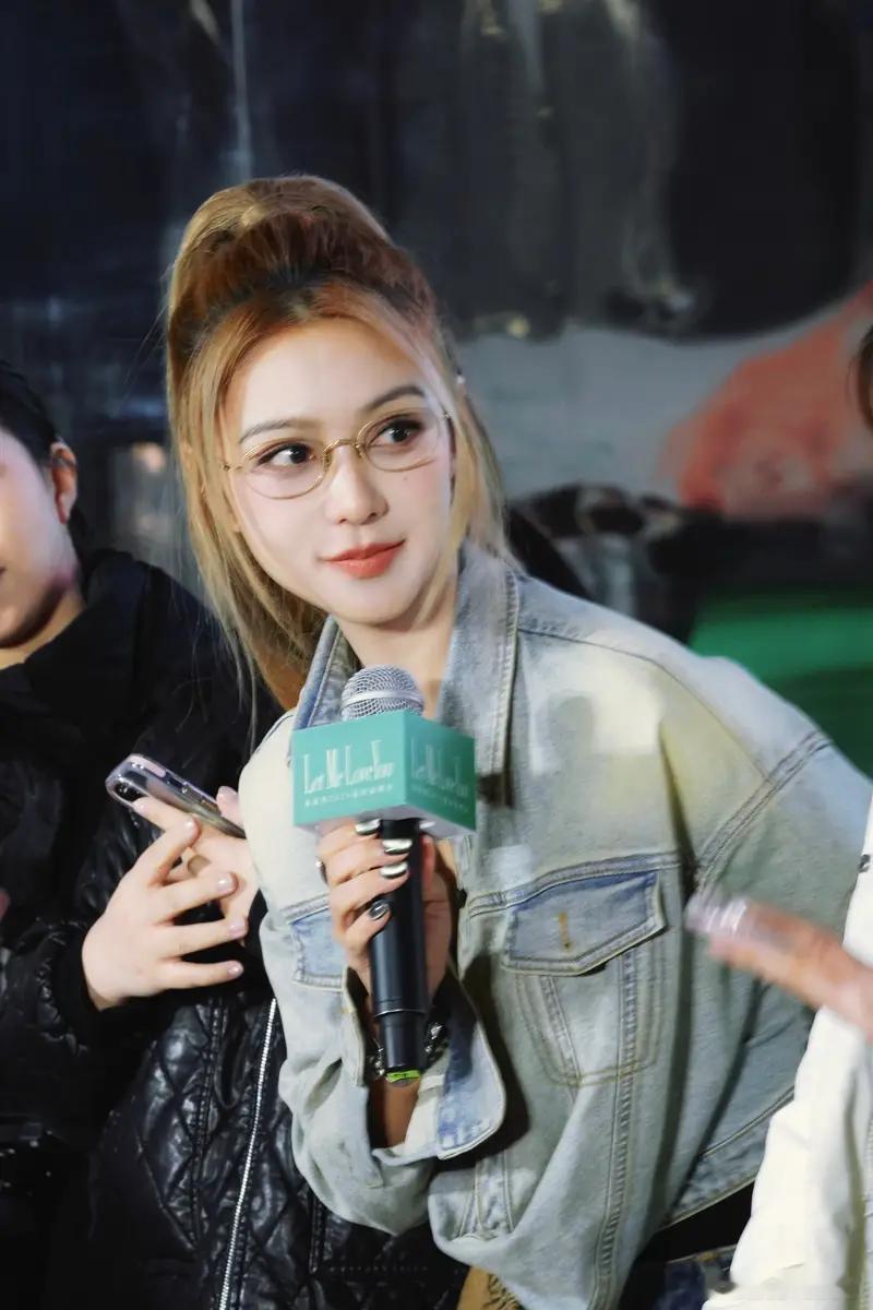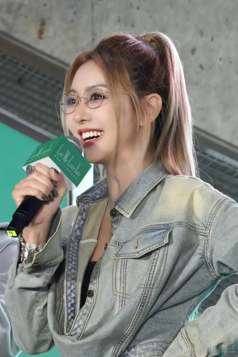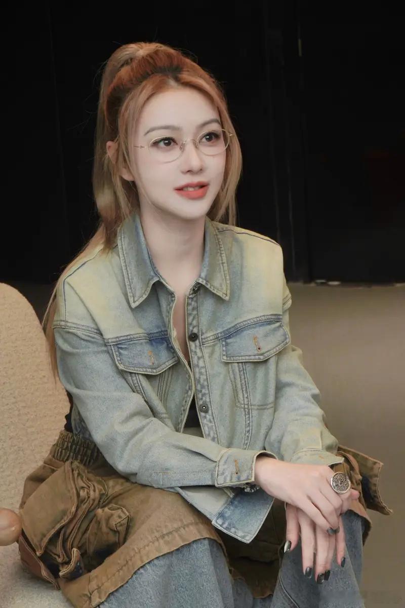 薛凯琪穿牛仔外套时尚活泼 戴金丝眼镜高智感十足
