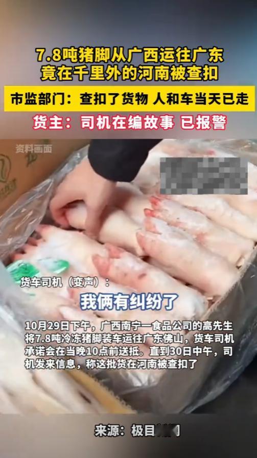 广西南宁,男子在平台上找了辆货车,将价值20万元的冷冻猪脚发往广东佛山,谁知,本来5个多小时路程,第二天还没有送到,男子赶紧联系司机,这才发现司机失联,更可怕的是,司机竟擅自将目的地改到了千里之外的河南。就在男子急的团团转时,又得知货物因为检疫手续不全,被河南泌阳县市监局扣留了。 高先生在南宁做冻品生意有些年头了,往广东发货运算是家常便饭。10月29号这天,他要把七吨多冷冻猪脚送到佛山的客户手里,这批货值二十多万,不算小数目,但想着也就五六个小时的车程,手续又都捋得明明白白,他心里挺踏实。 货源、客户都熟,就连运货的车都是通过老熟人找的,中介刘女士在货运圈混了二十年,靠谱的名声在外,高先生跟她合作过好几次,从没出过岔子。刘女士很快敲定了一辆冷链货车,司机姓张,电话里听着挺实在,说保证当天晚上十点前准到佛山。 装货的时候高先生特意盯了眼,猪脚都用标准冷链箱封好,随货的《动物检疫合格证明》是当天刚办的,墨迹都还没完全干。他把证明交到张师傅手里,反复叮嘱“这东西比货还重要,千万放好”,张师傅拍着胸脯说“放心吧,错不了”。可谁能想到,这句承诺转头就打了水漂。 当天晚上九点多,佛山的客户发来消息问货到哪了,高先生这才拿出手机联系张师傅。电话拨过去,没人接;再打,还是没人接。 他心里咯噔一下,赶紧登录货运平台查定位,这一看差点没把他气晕,货车压根没往南走,反而一路向北,定位停在了河南泌阳县,距离佛山足足一千多公里。 高先生急得团团转,赶紧给刘女士打电话。刘女士也懵了,说自己马上联系司机。可折腾了一晚上,张师傅的电话始终打不通,平台上的GPS信号在下午五点多就断了。 直到第二天上午,一个陌生电话打了进来,自称是河南泌阳县市监局的工作人员,说他的冷冻猪脚被依法扣留了,让他尽快过去处理。 这个消息让高先生彻底懵了。他赶紧问清楚情况,才知道货车是被群众举报的。有人看到一辆外地牌照的冷链车形迹可疑,在收费站附近徘徊,便报了警。 执法人员拦下车后,发现张师傅面对询问时慌慌张张,问他货是什么、要运到哪、货主是谁,他一概说不清楚。更关键的是,执法人员要《动物检疫合格证明》时,张师傅支支吾吾拿不出来。 高先生一听就急了,赶紧把证明的照片发了过去,解释说证明是刚办的,可能司机走得急忘带了。可工作人员说,检疫证明必须要原件,照片没有法律效力。 更麻烦的是,这批猪脚的外包装做得太简单,只印了个生产许可编码,连厂家名称和联系电话都没有,没法证明货物来源,只能按“涉嫌来源不明”暂扣。 为了这事,高先生当天就买了去河南的高铁票。路上他越想越不对劲,登录货运平台仔细核对信息,这下又查出个大问题:平台上接单的车主根本不是张师傅,这是典型的“人车不符”。刘女士得知后也直拍大腿,说自己只核实了车主信息,没料到司机半路换了人。 这种情况在货运行业居然不算少见,很多车主接了单后会转手交给其他司机跑,平台根本监管不过来。 到了泌阳县后,高先生才算拼凑出完整的经过。张师傅承认,他是从接单车主那转的活,出发前没仔细检查手续,发现证明没带时已经出了广西,想着蒙混过关就没说。 至于为什么改道去河南,他一会儿说导航坏了,一会儿说接到新订单,可说法漏洞百出。执法人员说,张师傅被拦下时神色慌张,车厢门有被撬动过的痕迹,不排除他想把货转卖的可能。 如今货被扣在河南,每天的冷藏费、保管费都在往上涨,佛山的客户已经发来了违约警告,二十万的货款能不能保住还是个未知数。 平台虽然冻结了运费,但对于高先生的损失来说只是杯水车薪。他去货运市场打听才知道,自己的遭遇不算个例,2022年全国就有五百多起类似的冷链货物被扣案,三成都是因为检疫证明问题,“人车不符”更是行业顽疾。 高先生现在后悔不已,当初就是太信“熟人关系”,没亲自核对司机信息,也没确认证明是否带齐。可他更清楚,光靠货主自己留心眼远远不够。 如果货运平台能严格审核人车信息,监管环节能有更灵活的核验方式,这些漏洞就能被堵上。这趟“南辕北辙”的货运,不仅让他亏了钱,更让他看清了行业里的隐忧。希望别再有人像他一样,为这些本可避免的漏洞买单。 信源:中吴网2025-11-13