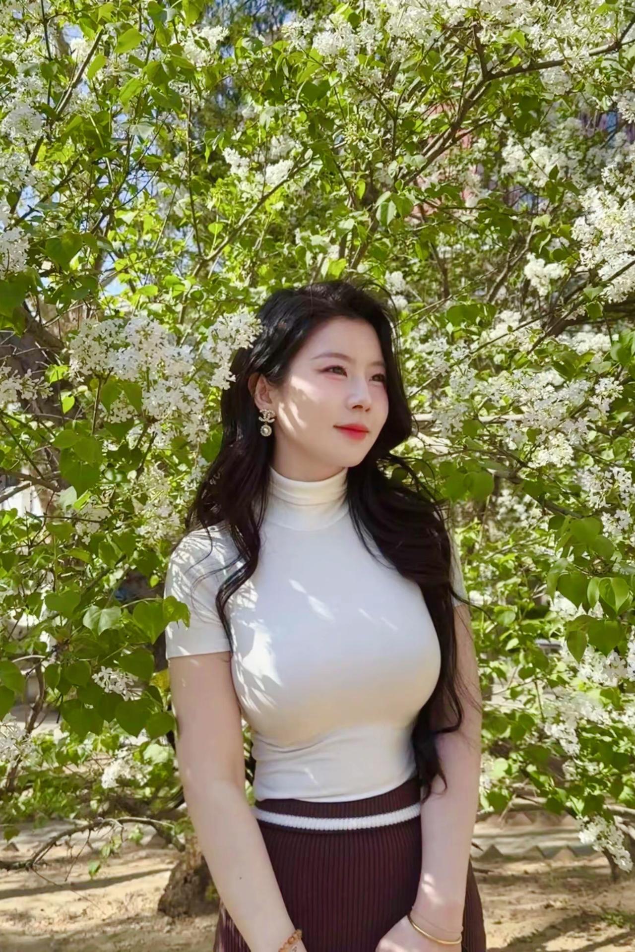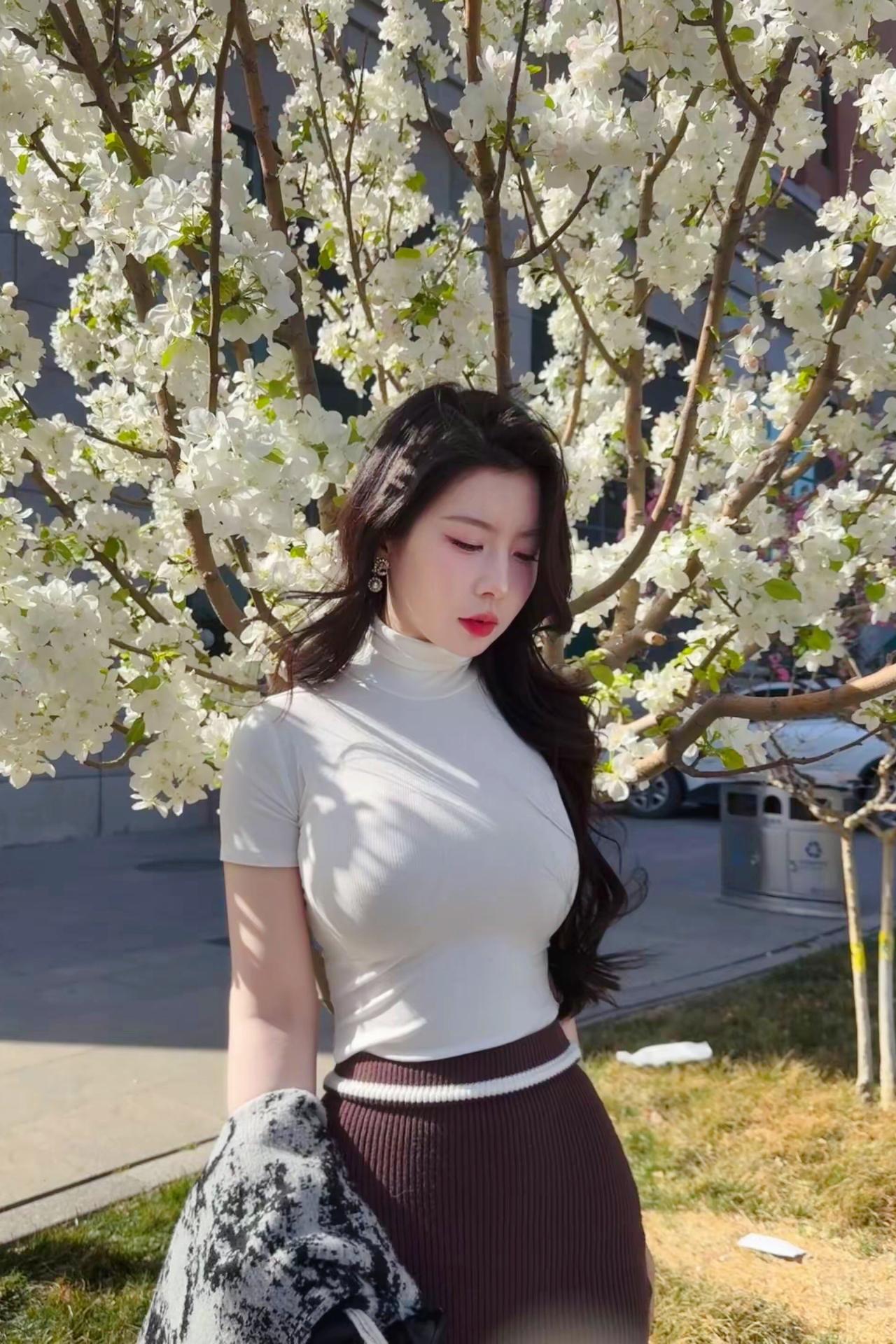 《春枝载裙》原创诗词 原创看图片配诗 风把云揉成淡蓝的糖纸 裹住枝桠漏下的光 第一朵花碰了碰她的指尖 白的瓣就沾了胭脂香 针织衫裹着春的软 腰线是季节折起的信笺 裙摆垂落时 碎金的镯子 碰响了丁香藏在叶底的颤 发梢缠过梨的白、樱的粉 影子陷进花影里打盹 她抬眼时 风忽然慢了半拍 把春天的褶皱 都熨成温柔的痕