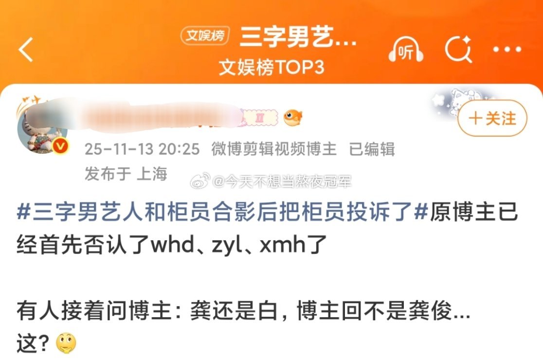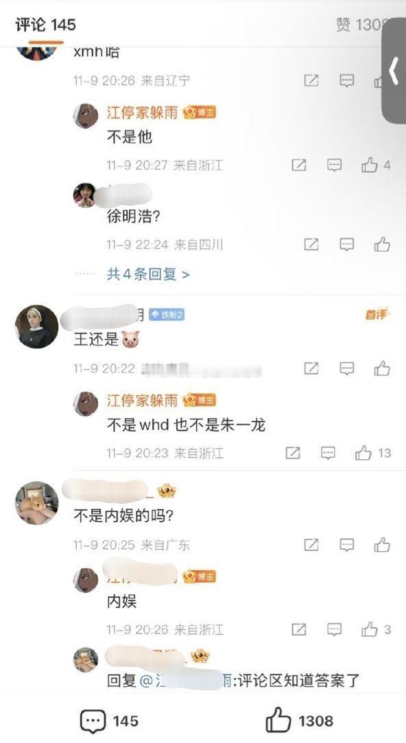 有人问是龚俊还是白,博主否认龚俊,这也太明牌了原博否定了一圈男艺人,唯独没否定。