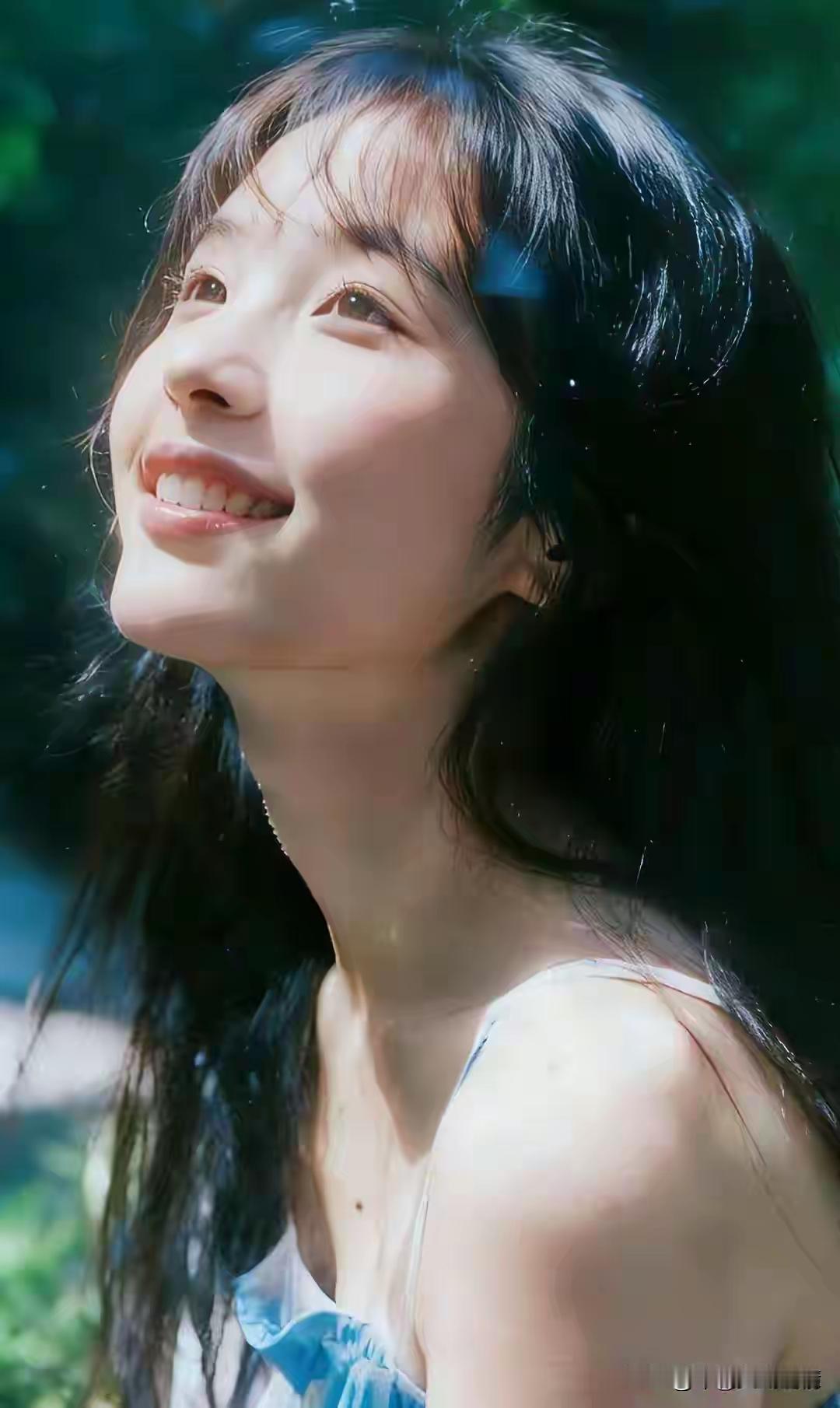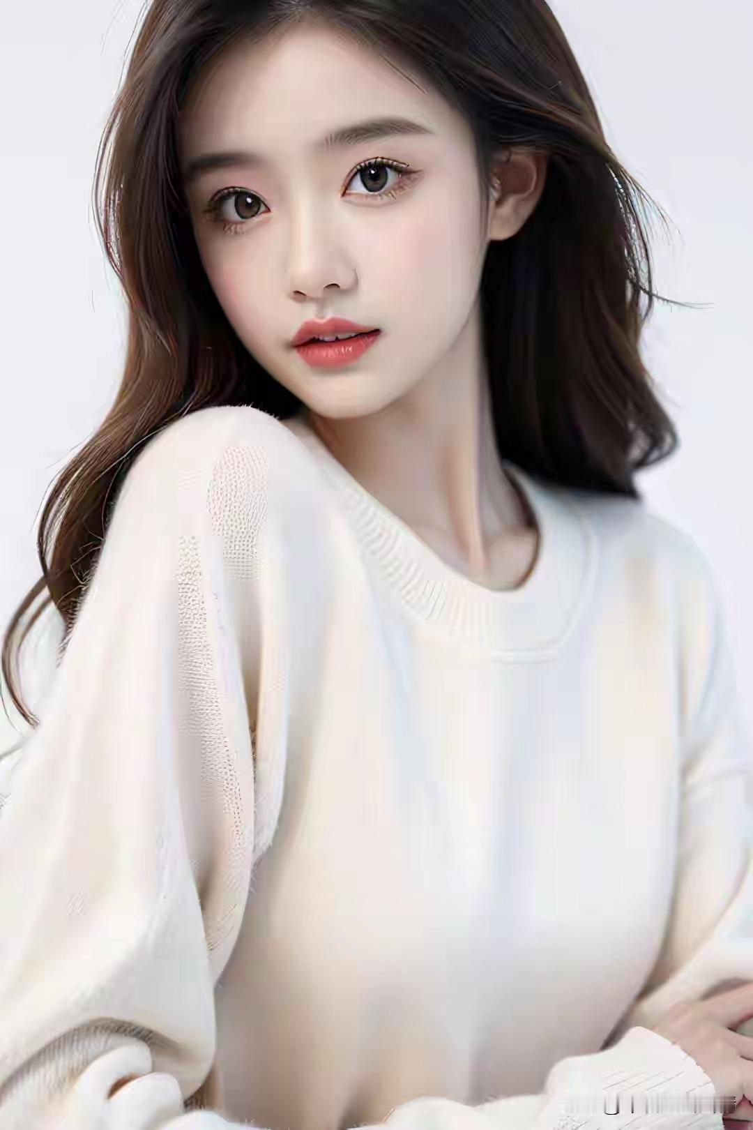 温柔眼妆,甜美笑容,完美无瑕的肌肤,AI生成的完美女神。