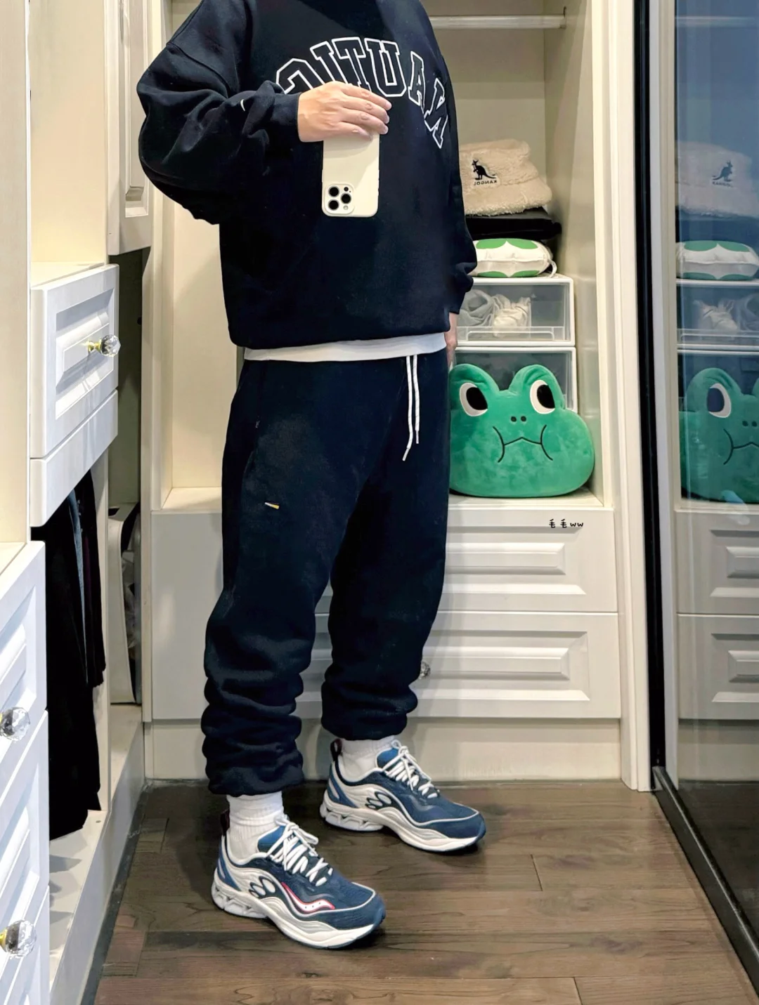 -秋季cozyfit,卫衣卫裤带来的松弛感穿搭;选择了一套藏蓝色系,与白色搭配层次刚刚好,踩双复古慢跑鞋可以出门了 . —————— . 👔Nautica JP // L . 👖Nautica JP // L . 👟Saucony / Expensive Taste // 42 . —————— . ✏️本人178cm75kg 球鞋尺码265mm(正常EU42) . 💭以上均为我个人观点,不喜勿喷,欢迎讨论