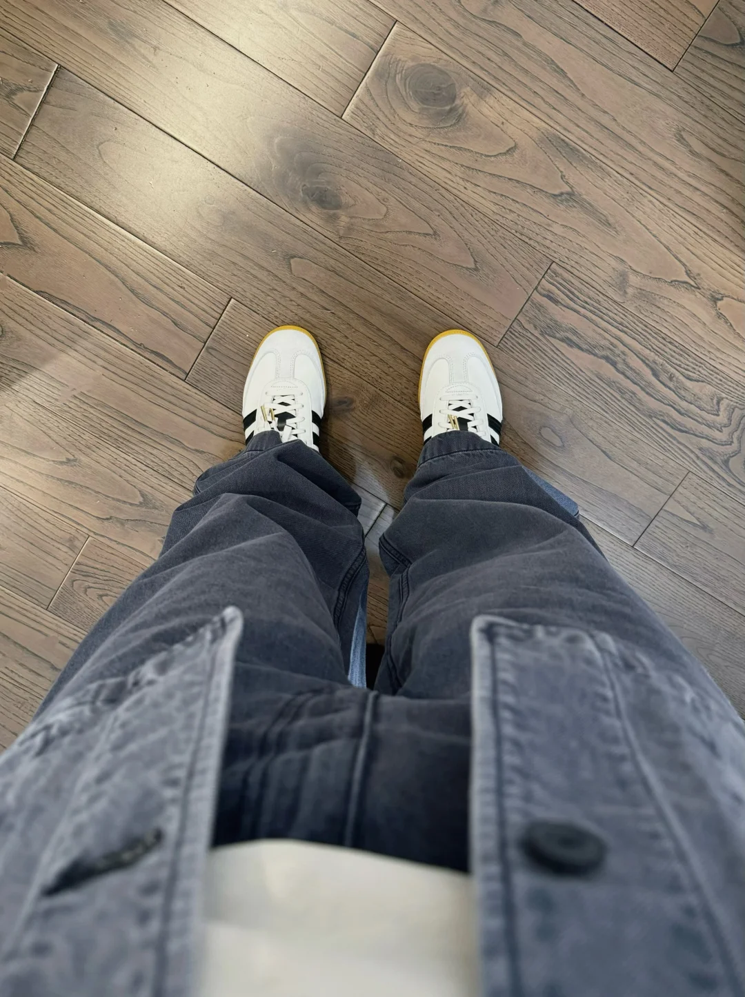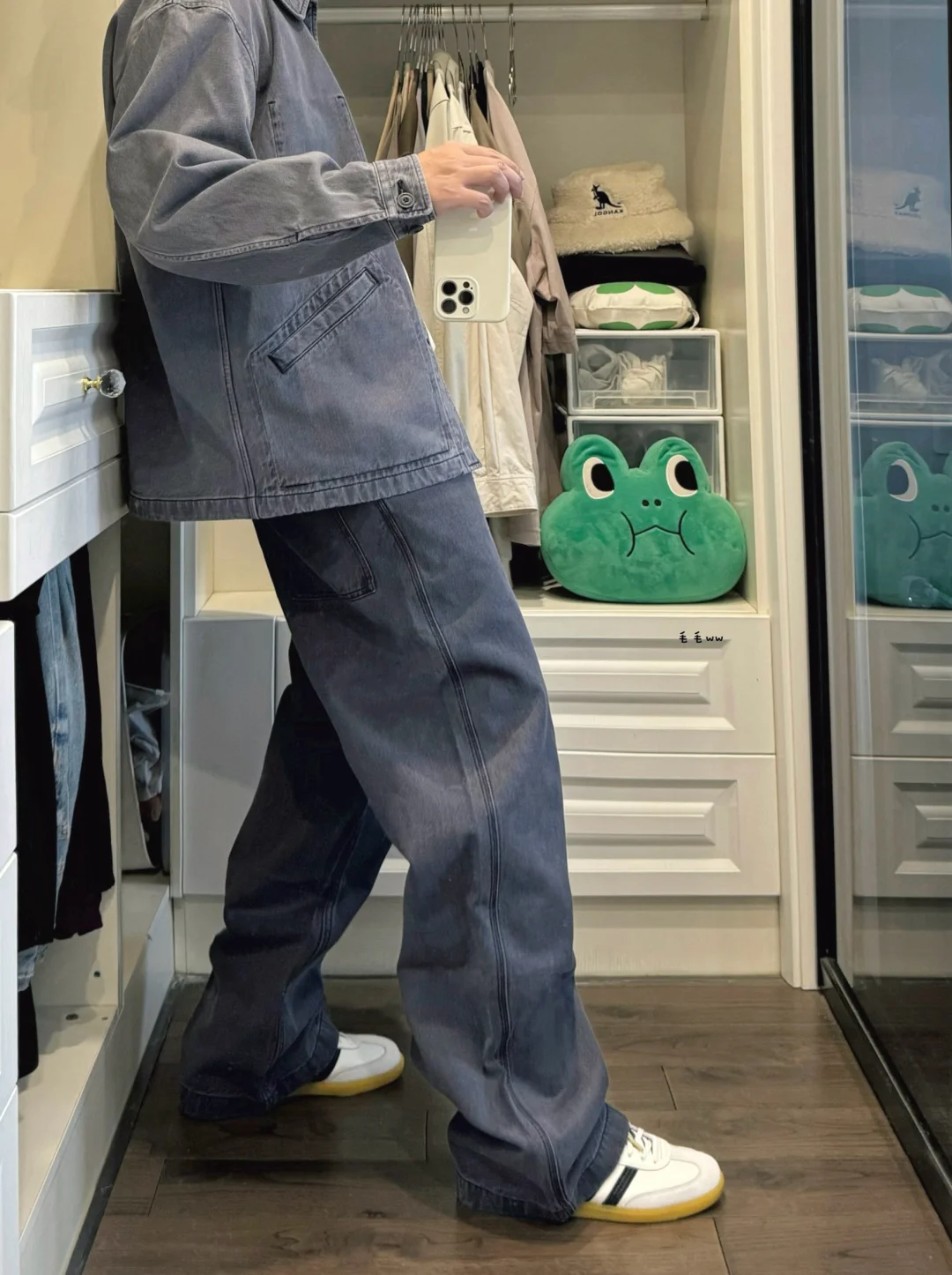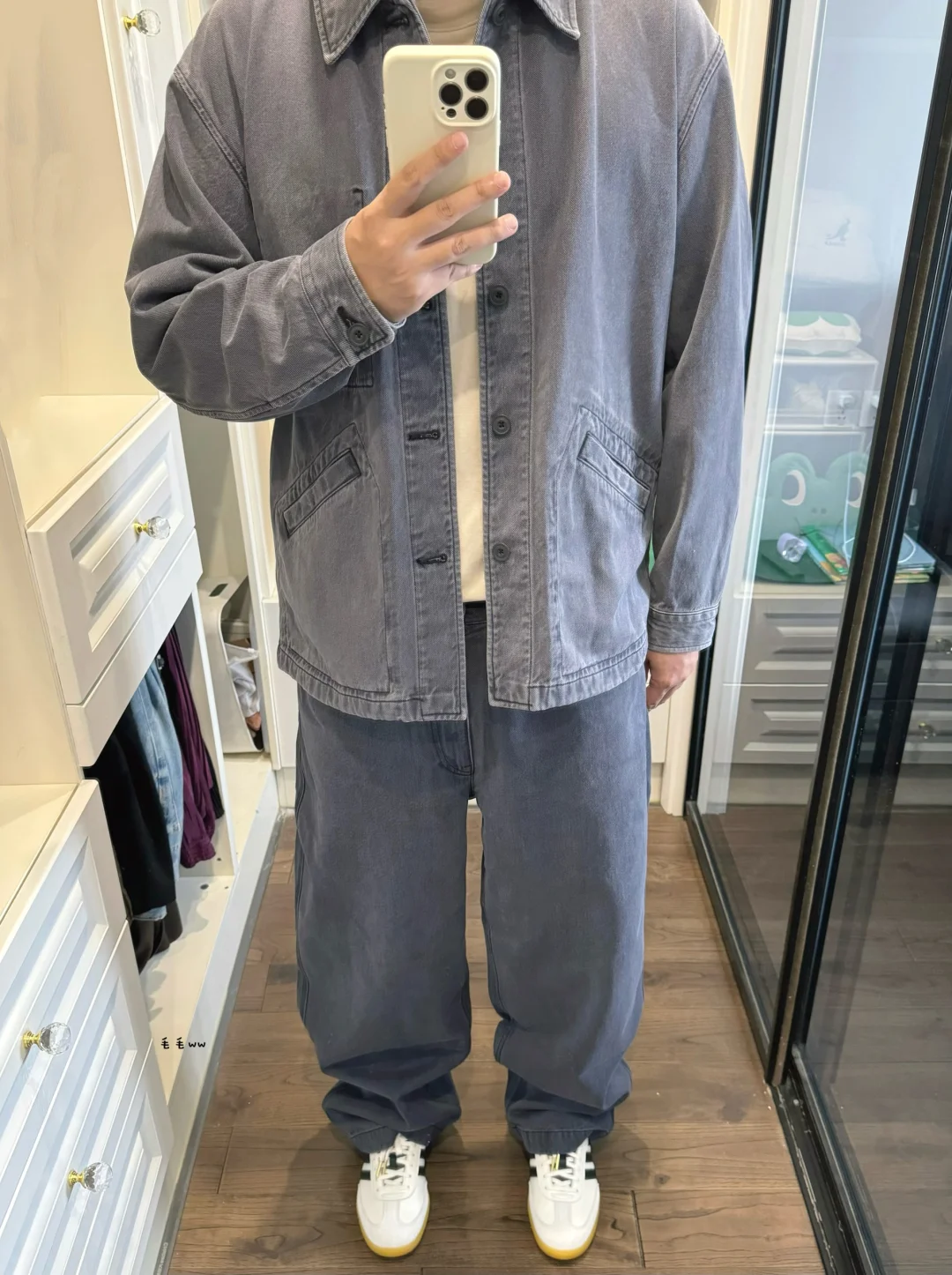 -秋季穿搭,被青灰色系的复古感拿捏了;牛仔夹克&彩色长裤,套装一起穿虽然丹宁元素溢出,但是整体比例协调很耐看,阔腿裤跟薄底鞋的组合也很融洽 . —————— . 👔Uniqlo U / 480920 // L . 👖Uniqlo U / 479824 // 84A . 👟Adidas x 101FF / Samba OG // 42.5 . —————— . ✏️本人178cm75kg 球鞋尺码265mm(正常EU42) . 💭以上均为我个人观点,不喜勿喷,欢迎讨论