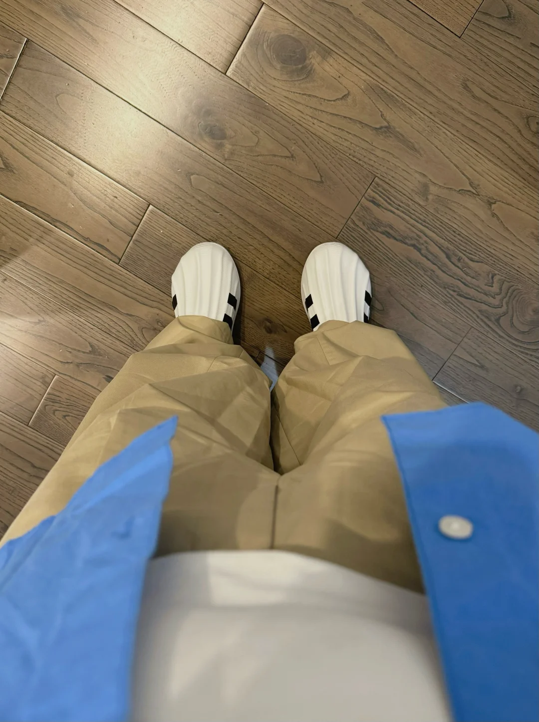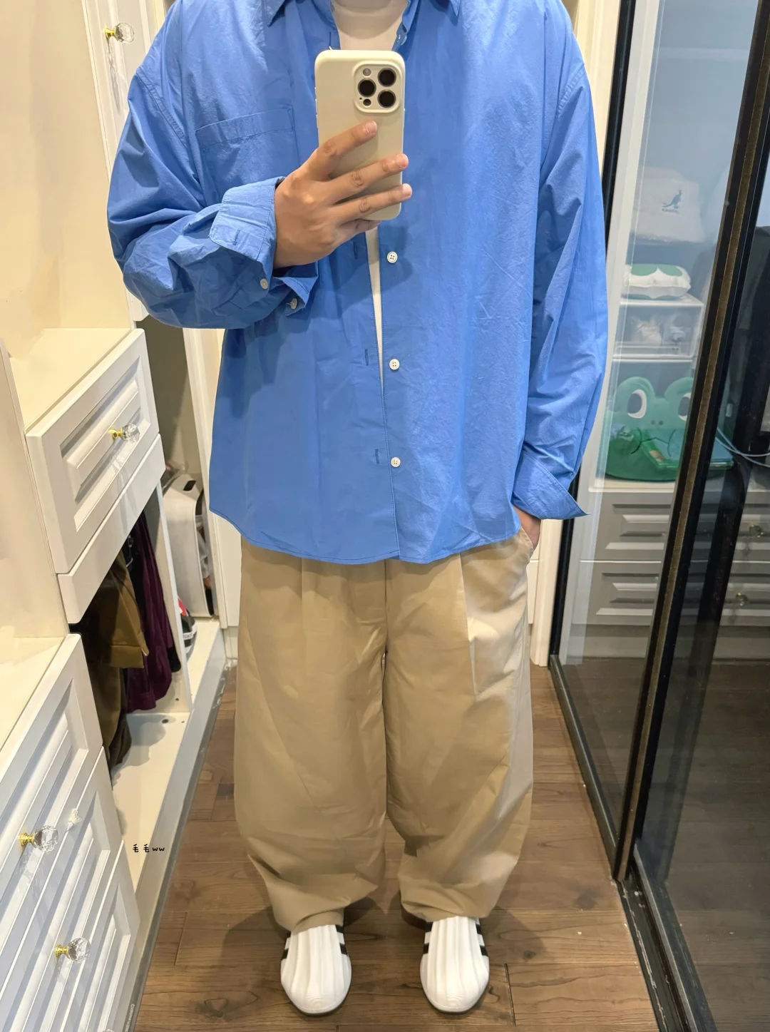 -没人能拒绝“miumiu蓝”吧,非常清爽的色调,春秋季搭配绝绝子;阔腿型的弯刀裤让整体比例更加协调,需要显高穿搭的小伙伴不妨一试 . —————— . 👔Massulti / 蓝色衬衫 // L . 👖Massulti / 弯刀长裤 // L . 👟Adidas adiFOM / Superstar // 43 . —————— . ✏️本人178cm75kg 球鞋尺码265mm(正常EU42) . 💭以上均为我个人观点,不喜勿喷,欢迎讨论