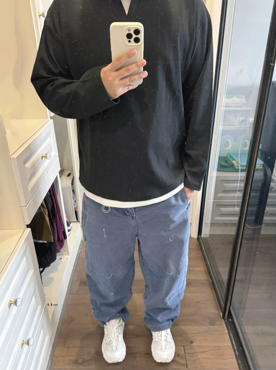 -秋季的黑白色调很耐看;华夫格假两件的设计自带层次感,蓝色的法工裤嫑太百搭;秋季穿搭,大家会选择复杂的叠穿还是一切“从简”呢 . —————— . 👔Massulti / 华夫格 // L . 👖Expensive Taste // M . 👟Hoka One One / tor ultra // 42 . —————— . ✏️本人178cm75kg 球鞋尺码265mm(正常EU42) . 💭以上均为我个人观点,不喜勿喷,欢迎讨论