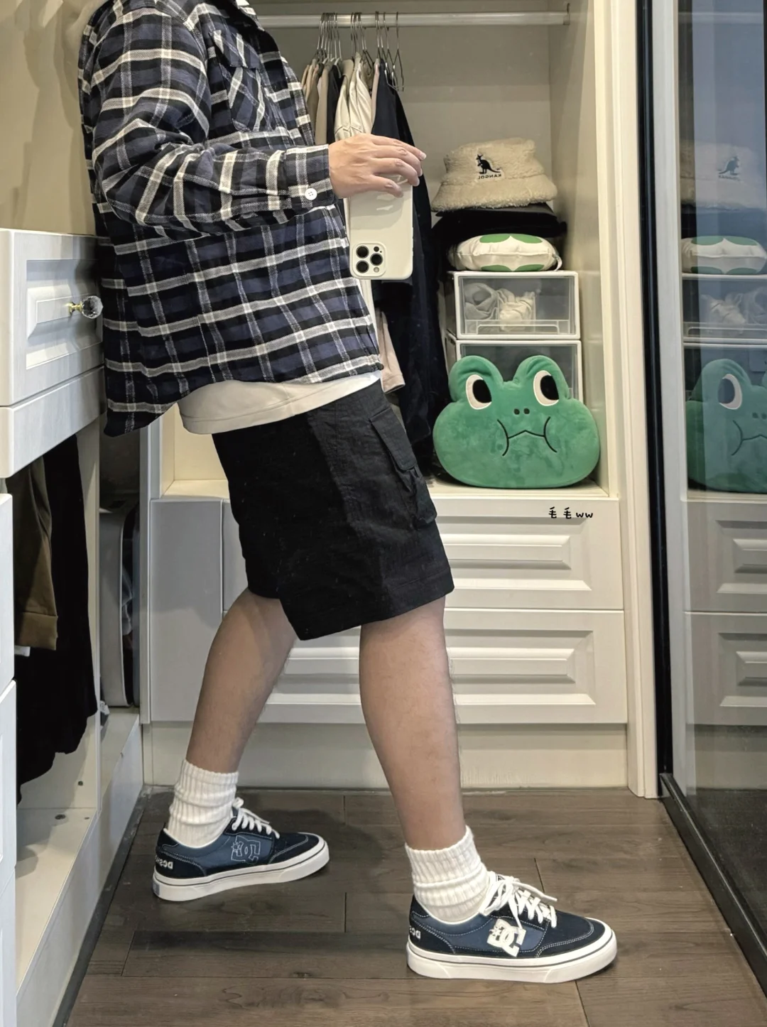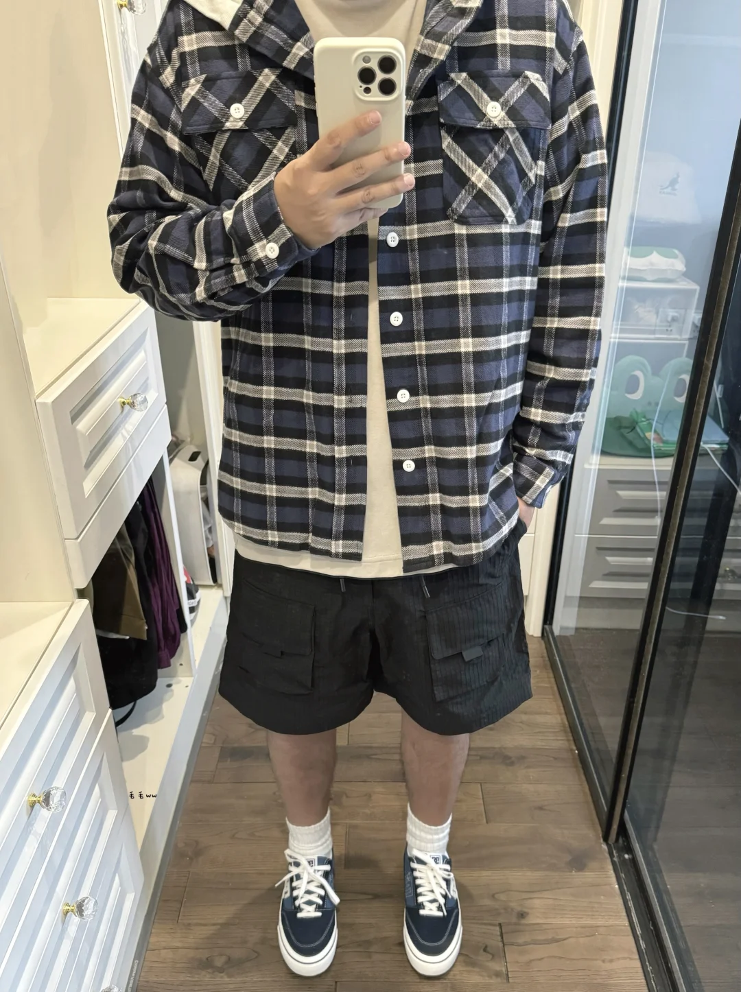 -秋季必备,衬衫搭配,格纹法兰绒当外套叠穿也是很好的选择;上长下短穿搭,选择了藏青色系,再踩一双帆布鞋非常chill,氛围感十足 . —————— . 👔Expensive Taste // M . 🩳Expensive Taste // L . 👟DC Shoes // 42 . —————— . ✏️本人178cm75kg 球鞋尺码265mm(正常EU42) . 💭以上均为我个人观点,不喜勿喷,欢迎讨论