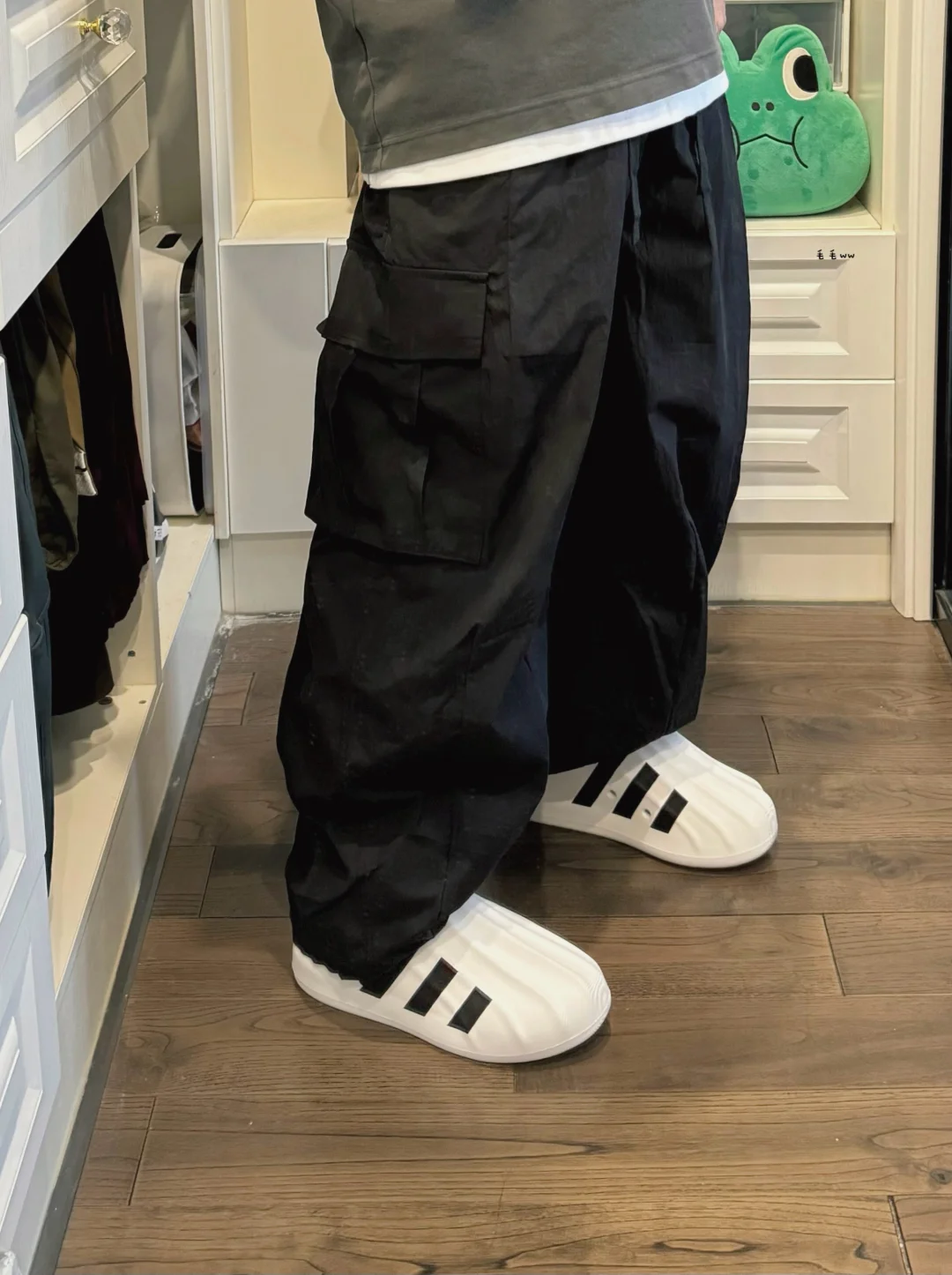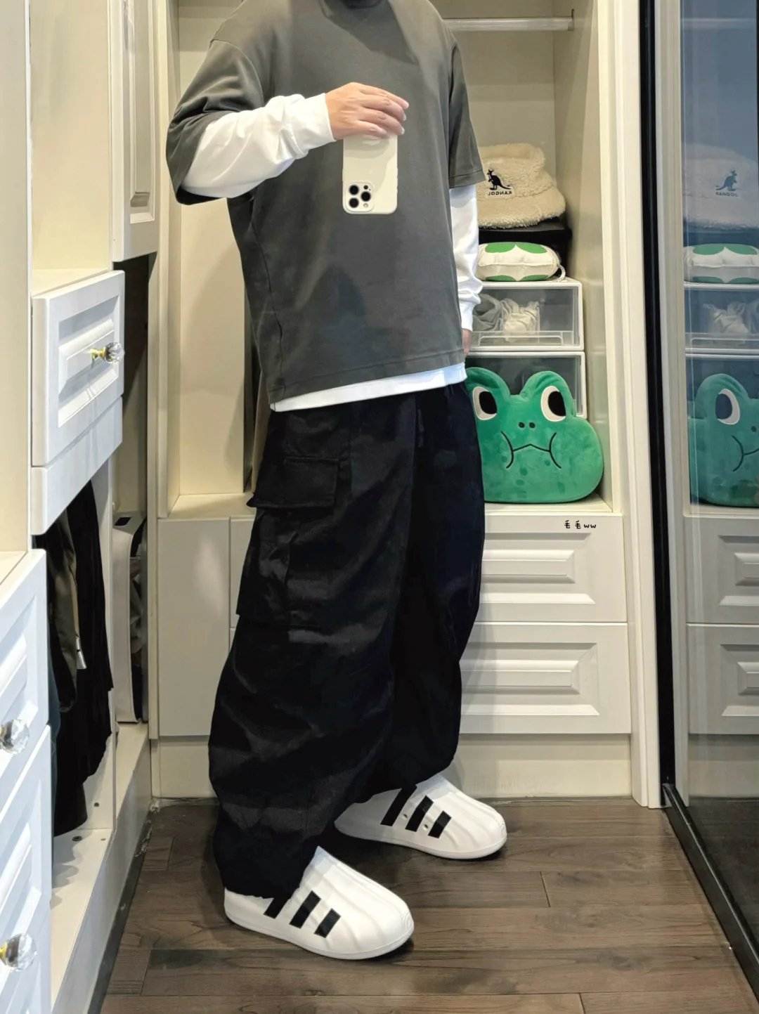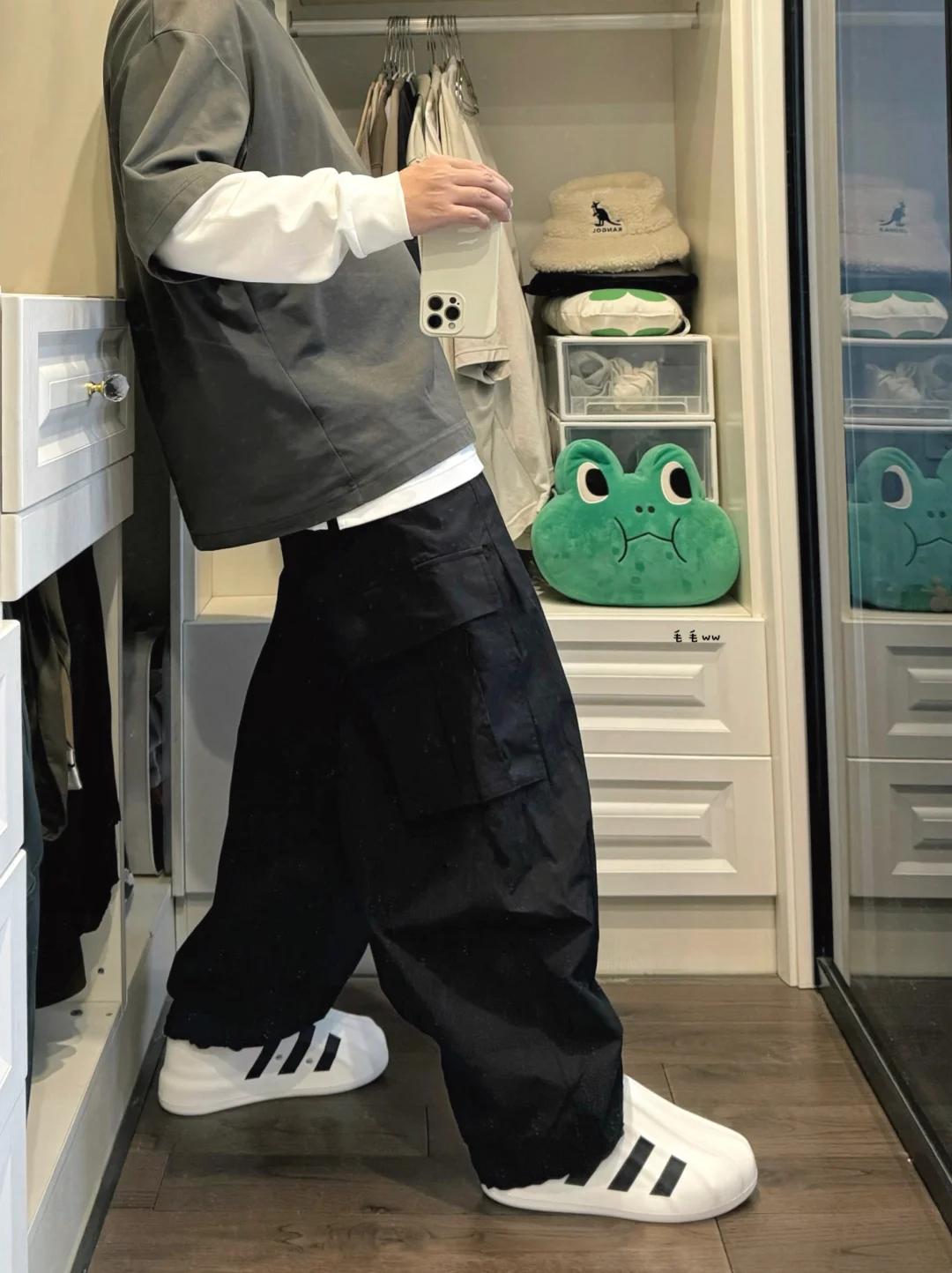 -极简风早秋穿搭,黑白灰三色,长短Tee叠穿;匹配一套大廓形,选择了非常阔腿的气球裤;大家的工装裤偏好,更喜欢直筒还是阔腿呢 . —————— . 👔Uniqlo U // XXL . 👖Massulti / 气球工装 // M . 👟Adidas adiFOM / Superstar // 43 . —————— . ✏️本人178cm75kg 球鞋尺码265mm(正常EU42) . 💭以上均为我个人观点,不喜勿喷,欢迎讨论