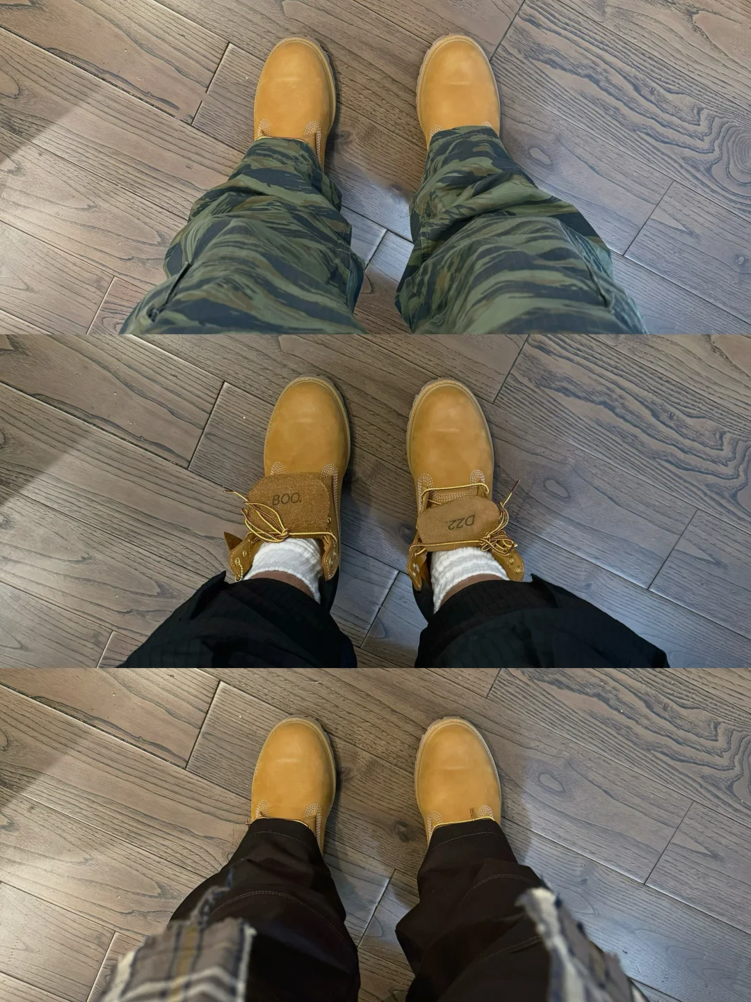 -秋冬季是真正的穿搭主场,靴子是鞋柜不可或缺的单品;七分裤、牛仔裤、工装裤、迷彩裤,总有一款适合你;小伙伴们更喜欢大黄靴的哪一类搭配 . —————— . -法工裤&七分裤:Expensive Taste -工装裤:Zara Origins -迷彩裤:Gap Palace -气球裤:Massulti -牛仔裤:Uzis . —————— . ✏️本人 178cm75kg // 球鞋尺码 265mm . 💭以上均为个人观点,不喜勿喷,欢迎讨论。