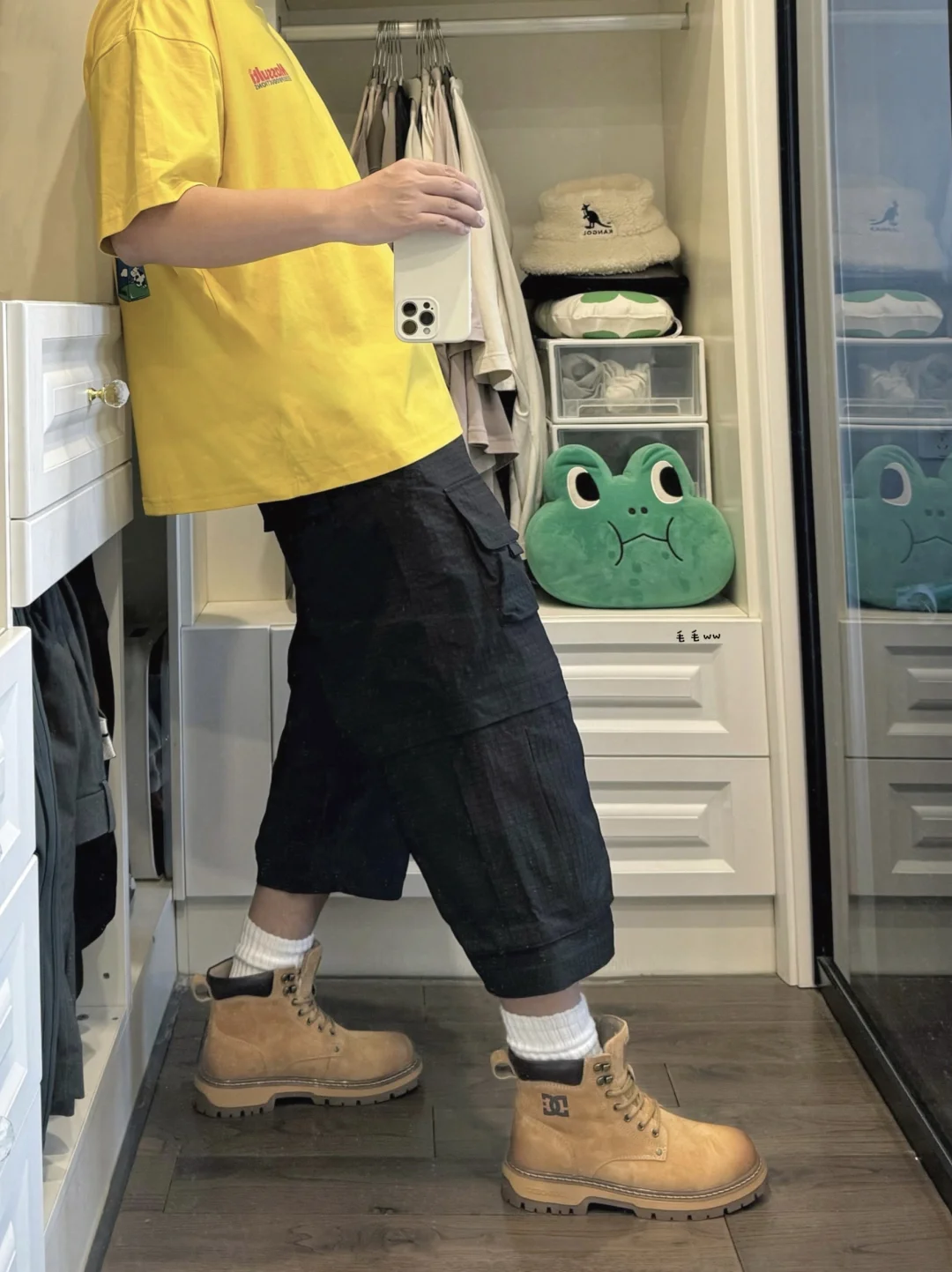 -本期早秋预热,不费力工装风,七分裤&马丁靴;挑一件黄色体恤,配色方面跟靴子非常契合 . —————— . 👕Massulti / 卡通印花 // L . 👖Expensive Taste // L . 👟DC Shoes / 马丁靴 // 42 . —————— . ✏️本人178cm75kg 球鞋尺码265mm(正常EU42) . 💭以上均为我个人观点,不喜勿喷,欢迎讨论