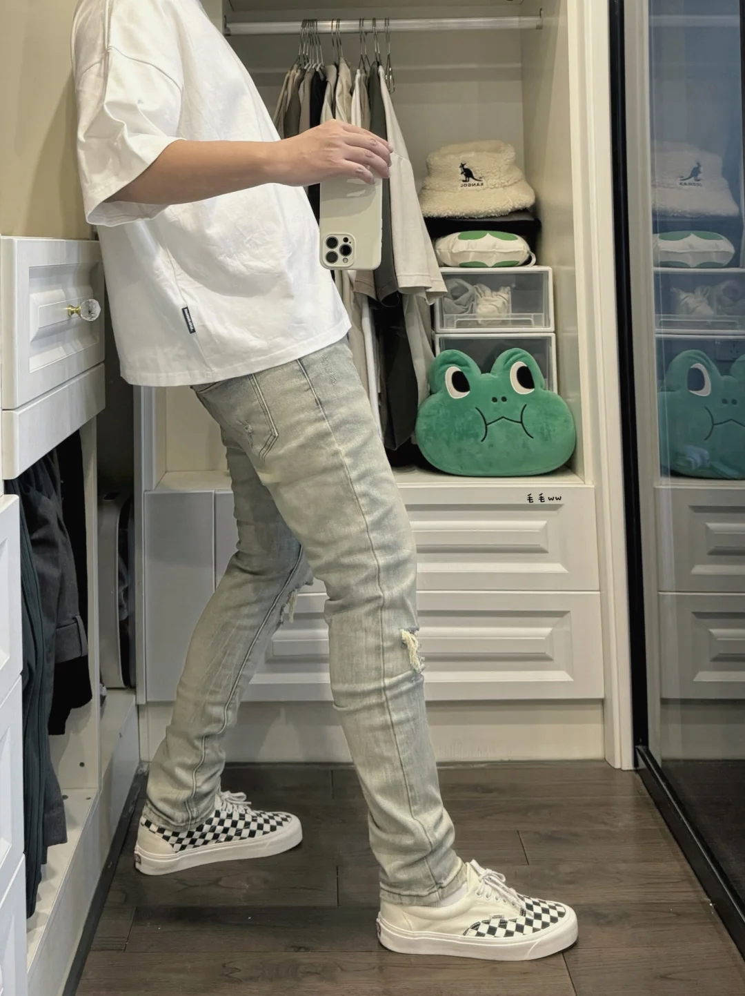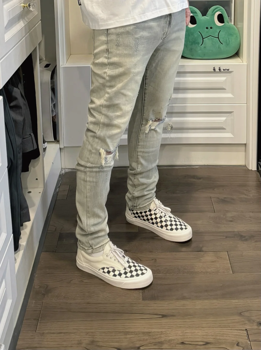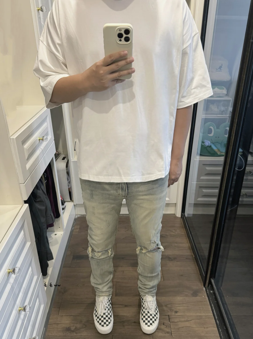 -本期浅色系穿搭,短宽白Tee搭配破坏牛仔 -窄裤的优势就是显瘦,大家觉得效果明显么 . —————— . 👕Expensive Taste // L . 👖Profound / 破洞牛仔 // 30 . 👟VANS era CRFT / 棋盘格 // 41 . —————— . ✏️本人178cm75kg 球鞋尺码265mm(正常EU42) . 💭以上均为我个人观点,不喜勿喷,欢迎讨论