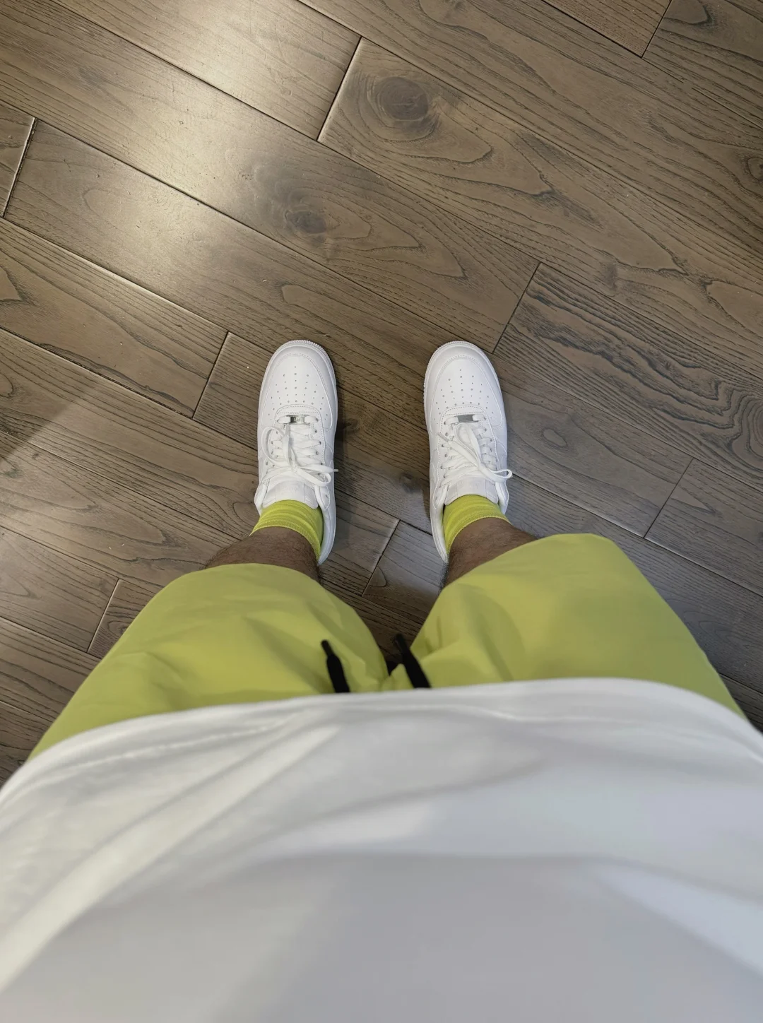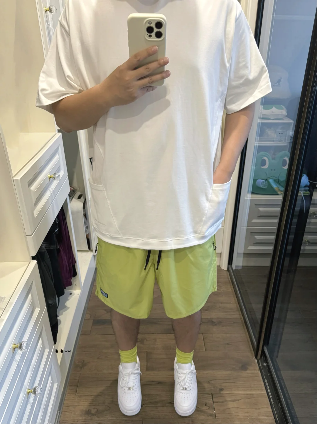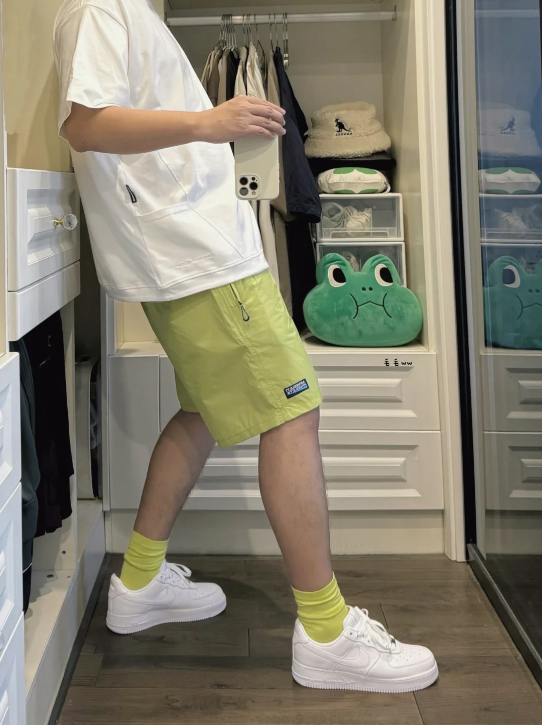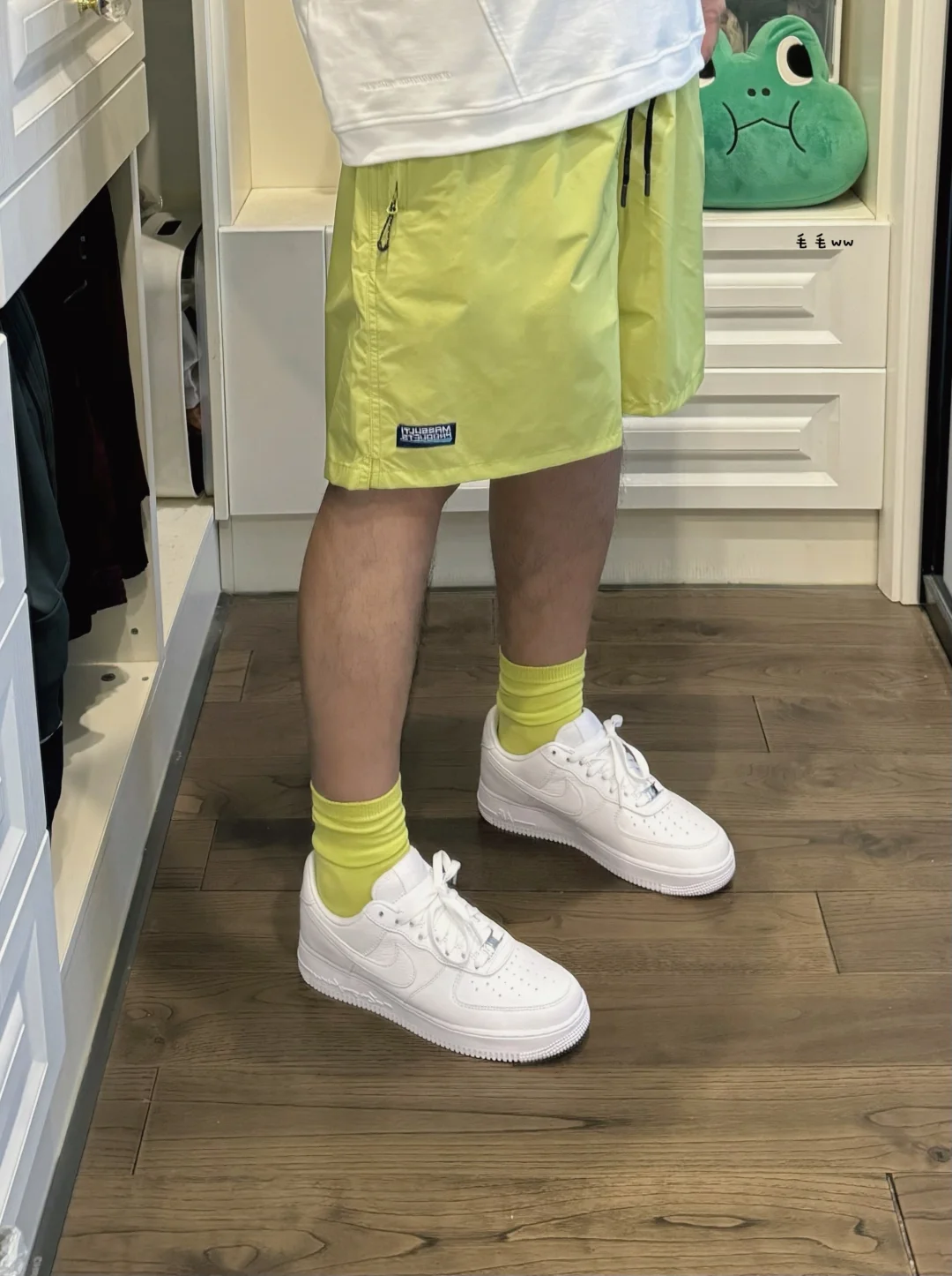 -多巴胺穿搭,大家喜欢牛油果绿这个配色么;夏季户外,这类荧光系视觉冲击很强,小细节呼应或者搭配大面积白色即可 . —————— . 👕Expensive Taste // M . 🩳Massulti / 户外短裤 // XL . 👟Air Force 1 low / NOCTA // 42 . —————— . ✏️本人178cm75kg 球鞋尺码265mm(正常EU42) . 💭以上均为我个人观点,不喜勿喷,欢迎讨论