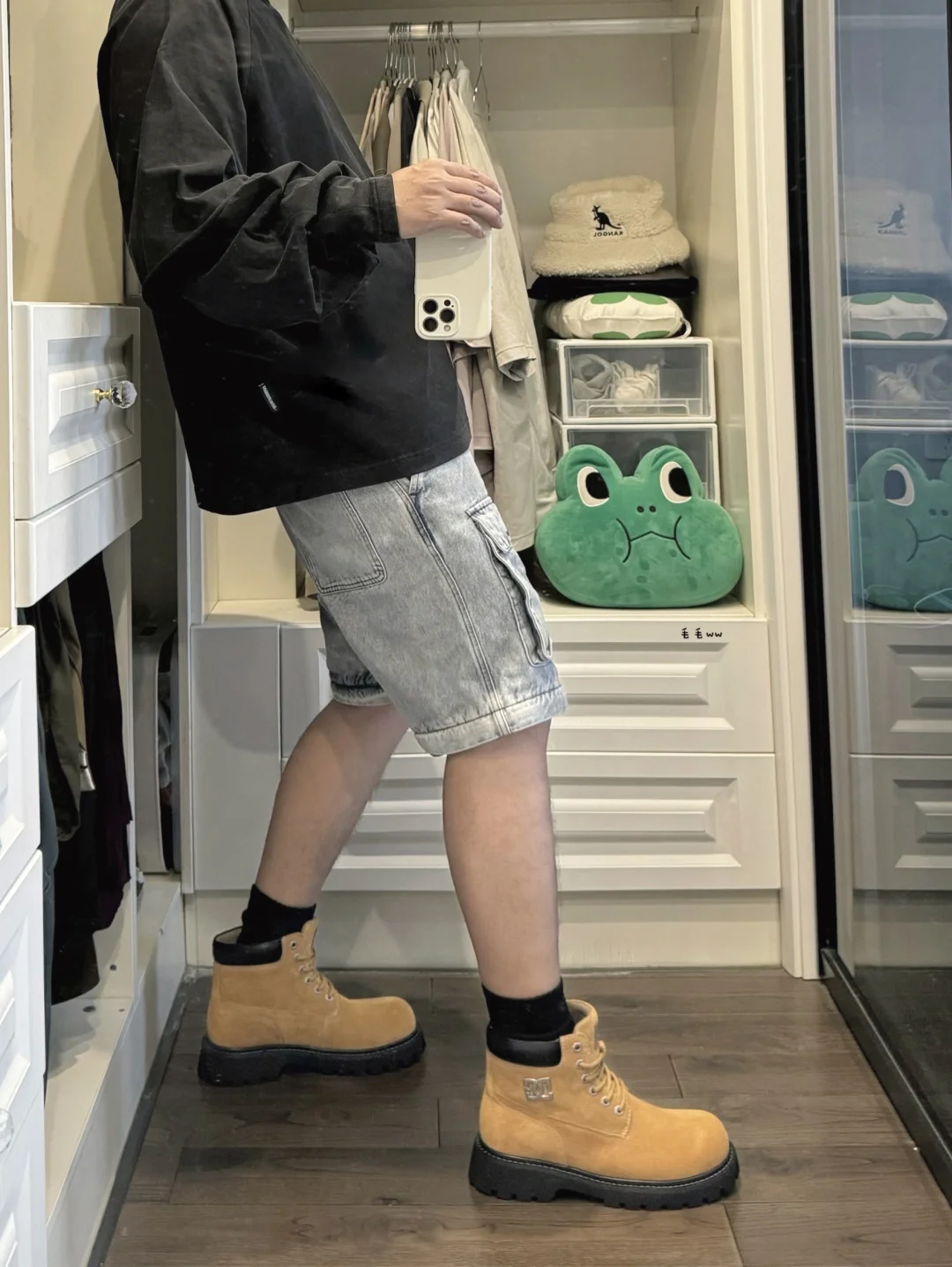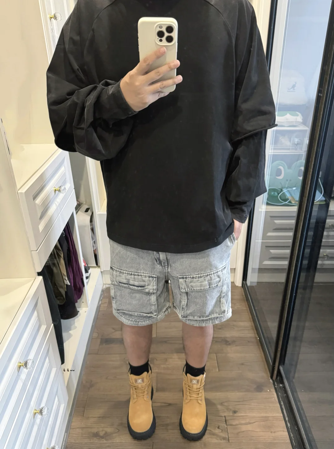 -预热一下早秋look,上长下短穿搭,大廓形假两件&浅色牛仔工装;不费力工装风还需要一双大黄靴,大家的秋冬季喜欢搭配靴子么 . —————— . 👔Expensive Taste // M . 🩳Expensive Taste // L . 👟DC Shoes / 马丁靴 // 42 . —————— . ✏️本人178cm75kg 球鞋尺码265mm(正常EU42) . 💭以上均为我个人观点,不喜勿喷,欢迎讨论