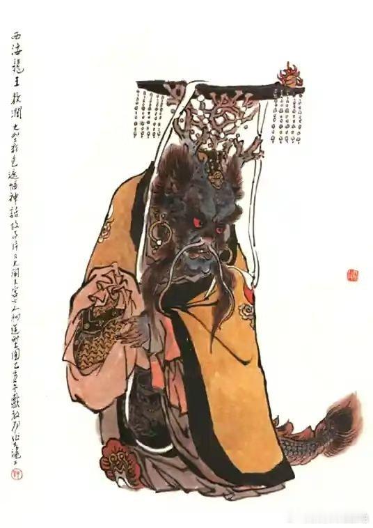 西海龙王原名敖闰(亦有称敖顺,敖钦),中国神话传说中角色,是“四海龙王”之一 。西海龙王一词首次出现于《道藏·太上洞渊神咒经》卷一三·制三·龙王品。据《道藏·太上洞渊神咒经》记载可知西海龙王有吐水万石,扫除不祥的能力本领 。据《李元吴江救朱蛇》的记载:“见数十人,皆锦衣,簇拥一老者出殿上。其人蟾冠、大袖、朱履、长裙,手执玉圭,进前迎讶。”可知西海龙王形象为一锦衣玉服的老者形象 。龙王一词最早出自于佛教典籍,后被道教按照方位敕封为西方西海龙王,为五龙神之一 。至唐朝时被官方认可其身份,并予以祭祀 。到宋朝微宗大观二年十,诏天下五龙神皆封王爵,青龙神封广仁王,赤龙神封嘉泽王,黄龙神封孚应王,白龙神封义济王,黑龙神封灵济王。西海龙王由此拥有王爵身份,被官方正式册封为义济王,其身份由龙神转变为龙王 。西海龙王集雨神与海神身份于一身,独霸海洋世界。据《李元吴江救朱蛇》的记载:“见数十人,皆锦衣,簇拥一老者出殿上。其人蟾冠、大袖、朱履、长裙,手执玉圭,进前迎讶 。《李元吴江救朱蛇》中的老者为西海龙王,其形象为头上佩戴蟾冠,穿着长裙朱履,手执玉圭。据唐朝时期《全唐文》记载:建广润龙王庙盖闻四表,则功济于生者:百成,则水旱事件于阴鹭。而况浙阳重镇,自古吴都,襟带溪湖,接连江海,赋舆甚广,田亩至多,须资灌溉之功,用奏耕桑之业。…固有神龙居止,水府司存,降景佑於生灵,兴旱涸之风雨 。可知西海龙王有降景佑於生灵,兴旱涸之风雨的能力和本领。