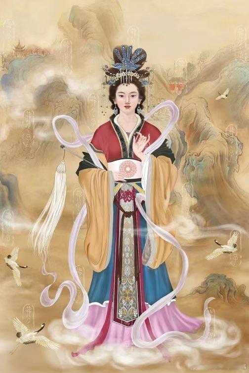 碧霞元君,又称泰山玉女、泰山娘娘、泰山奶奶、三仙圣母,是以中国大陆华北地区为中心的山神信仰(道教),道经称为“天仙玉女碧霞护世弘济真人”“天仙玉女保生真人宏德碧霞元君”。在《岱史》中被称为“玉青大帝”。 因坐镇泰山,尊称泰山圣母碧霞元君,俗称泰山娘娘。全称为“东岳泰山天仙玉女碧霞元君”。其道场是在中国五岳之尊的东岳泰山,位于山东省的泰安市。碧霞元君的影响力由山东省泰安市传播开来,历经上千年,特别是在明清时期以后,对于中国北方地区文化产生了重大的影响。道教认为,碧霞元君“庇佑众生,灵应九州”“统摄岳府神兵,照察人间善恶”,是道教中的重要女神,中国历史上影响最大的女神之一。中国民间的“北元君,南妈祖”的说法,指的是碧霞元君和妈祖娘娘之间,虽然有地域之差和山神、海神之别,但同样都普度众生、舍己为人,成为北方地区和南方地区闻名于世的保护女神,“碧霞”意指东方的日光之霞,“元君”则带有浓重的道教色彩,是对道教女神的尊称。碧霞元君,道教全称:东岳泰山天仙玉女碧霞元君,民间亲切的称为:泰山奶奶、泰山娘娘、泰山圣母、天仙圣母等,其道场是在五岳之尊的东岳泰山。东岳泰山天仙玉女碧霞元君诞辰:农历“四月十八”。千百年来人们对碧霞元君尊崇倍至。碧霞元君平易近人,和蔼可亲,乐善好施。千百年来人们对碧霞元君尊崇倍至。碧霞元君能为众生造福如其愿:贫者愿富,疾者愿安,耕者愿岁,贾者愿息,祈生者愿年,未子者愿嗣,子为亲愿,弟为兄愿,亲戚交厚,靡不相交愿,而神亦靡诚弗应。明万历二十一年(1593年)王锡爵《东岳碧霞宫碑》记载:“元君能为众生造福如其愿,贫者愿富,疾者愿安,耕者愿岁,贾者愿息,祈生者愿年,未子者愿嗣,子为亲愿,弟为兄愿,亲戚交厚,靡不相交愿,而神亦靡诚弗”。碧霞元君让大众倍感亲切,愈加信赖,一跃成为了民众心目中的慈母、圣母 。碧霞元君,全称“天仙玉女泰山碧霞元君”,道教所奉女仙尊神之一 。至于碧霞元君的来历,一说为黄帝所遣之玉女。据《玉女考》和《瑶池记》记载:“黄帝建岱岳观时,曾经预先派遣七位女子,云冠羽衣,前往泰山以迎西昆真人,玉女乃七女中的修道得仙者”。其圣诞为农历的四月十八日,是时泰山碧霞祠和供奉碧霞元君的庙观均要举行隆重的庆典。